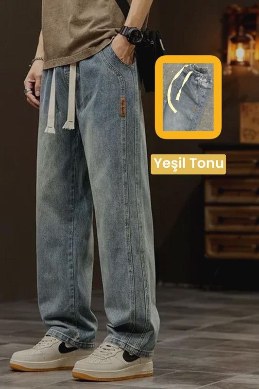 Reax Streetwear Beli Lastikli İpli Düz Paça Rahat Kesim Erkek Jean Pantolon