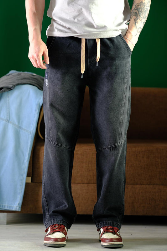 Reax Streetwear Beli Lastikli İpli Düz Paça Rahat Kesim Erkek Jean Pantolon