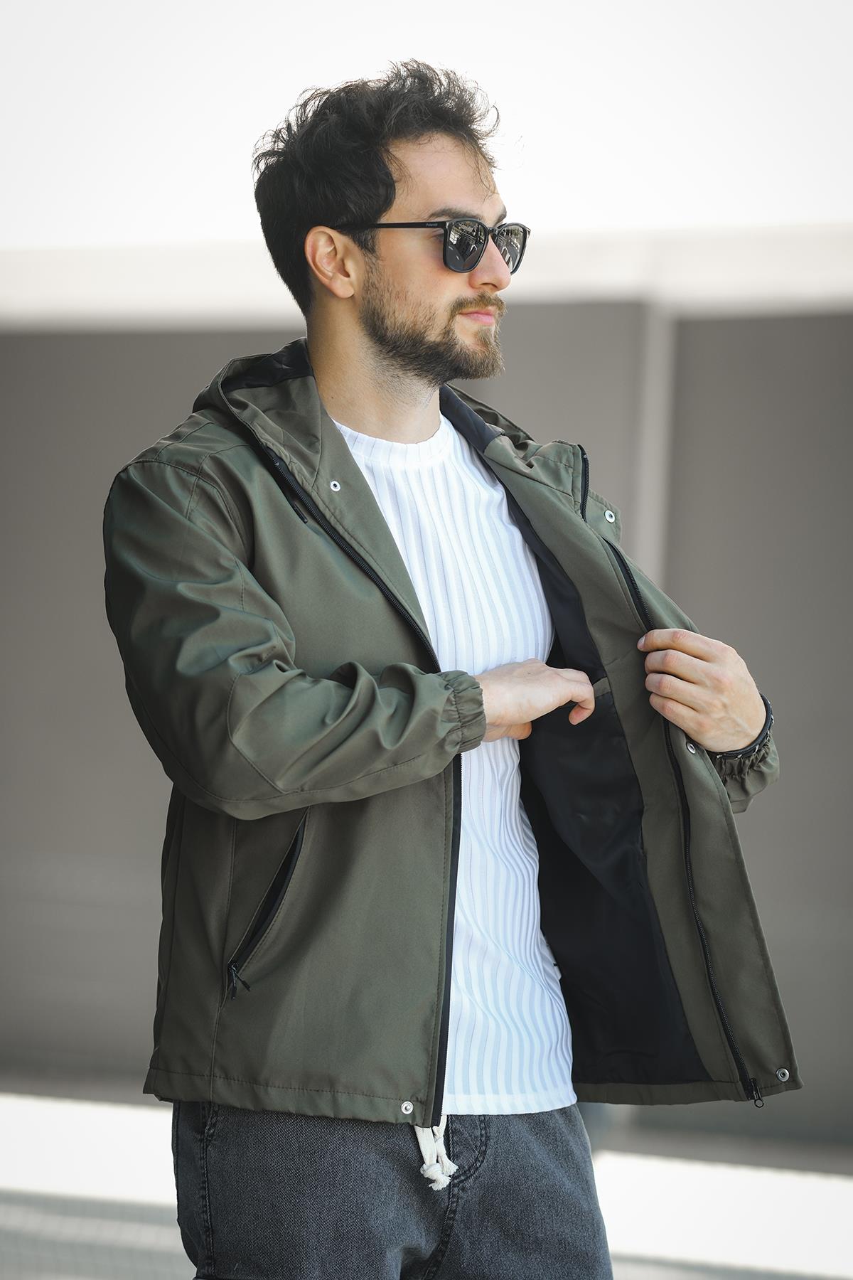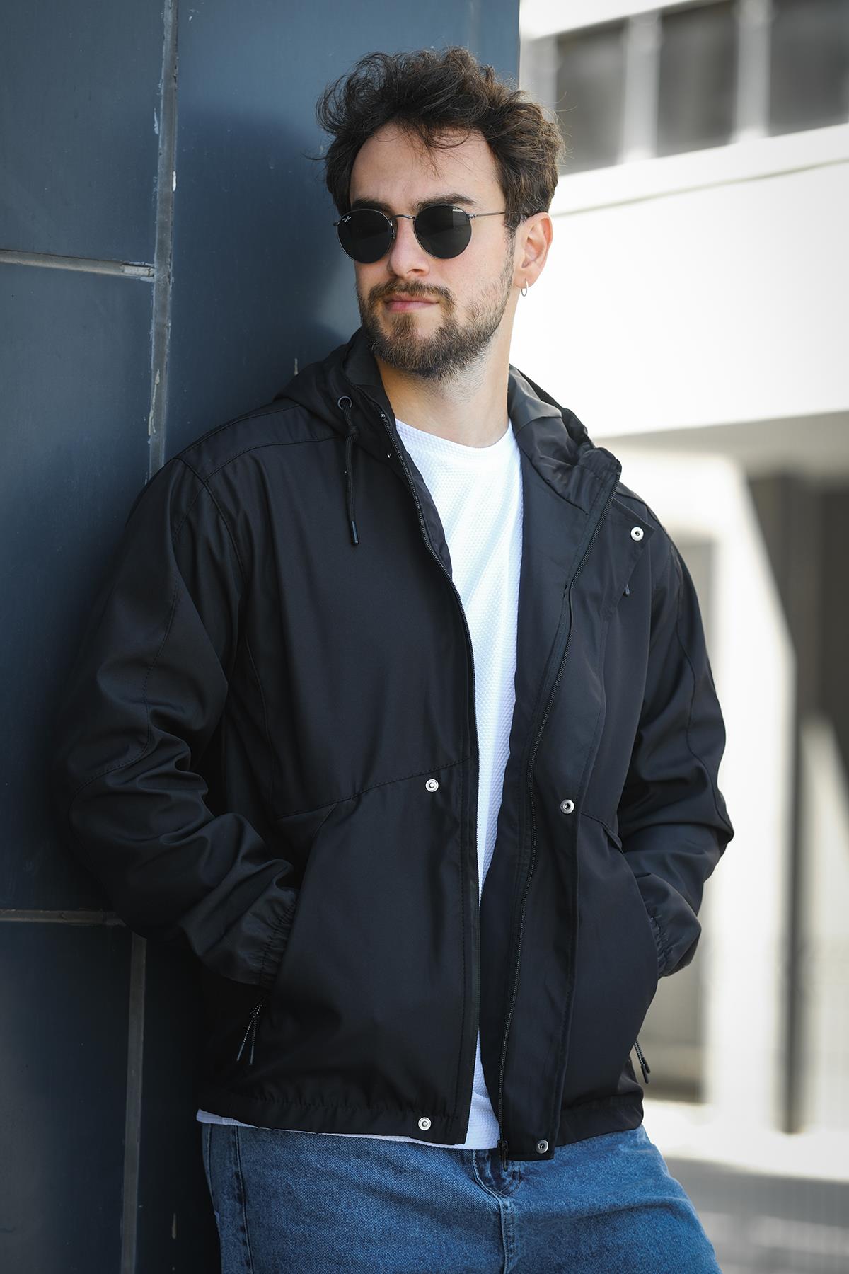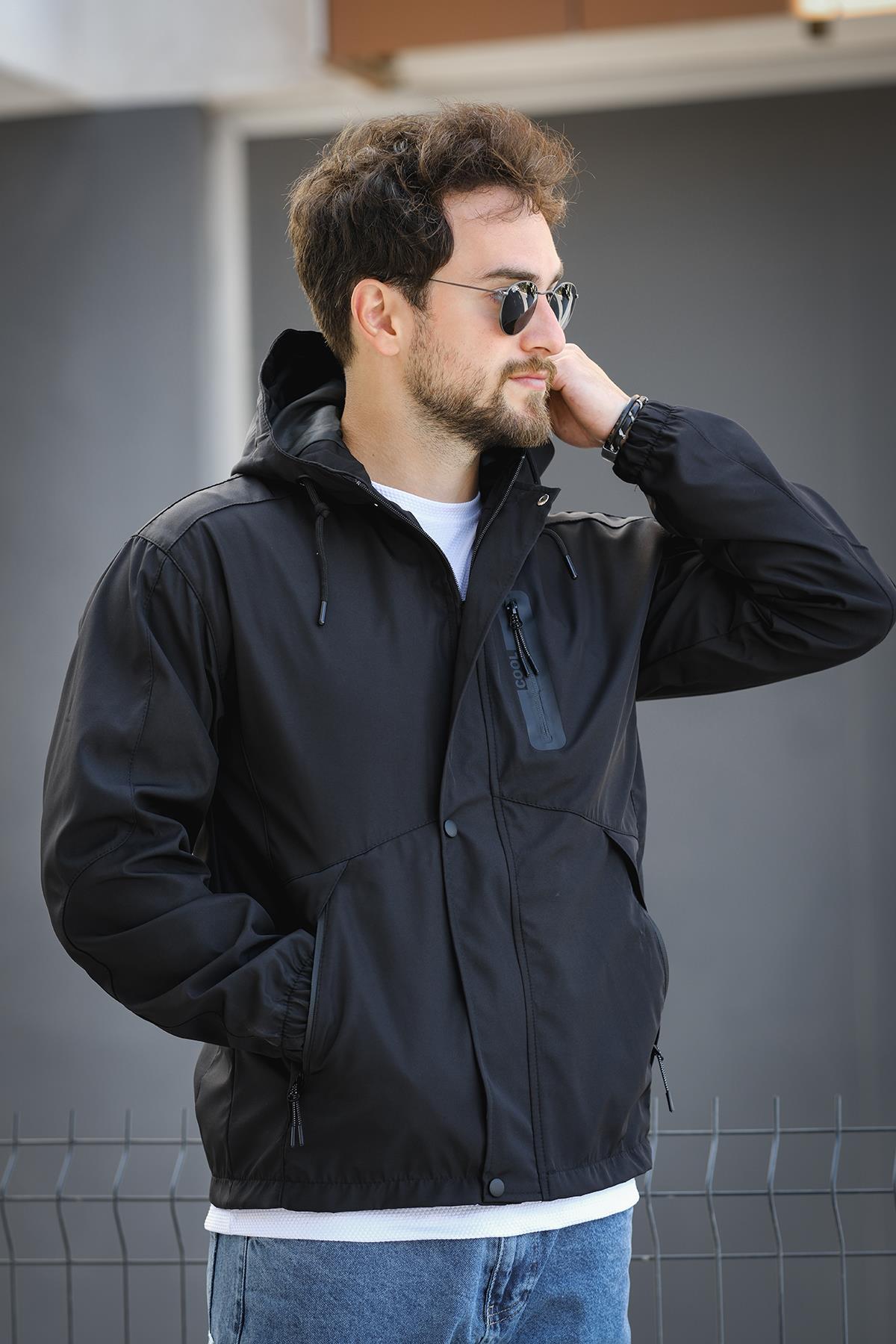 Barky Suya Dayanaklı Fermuar Detaylı Astarlı Erkek Kapüşonlu Mevsimlik Mont Yağmurluk
