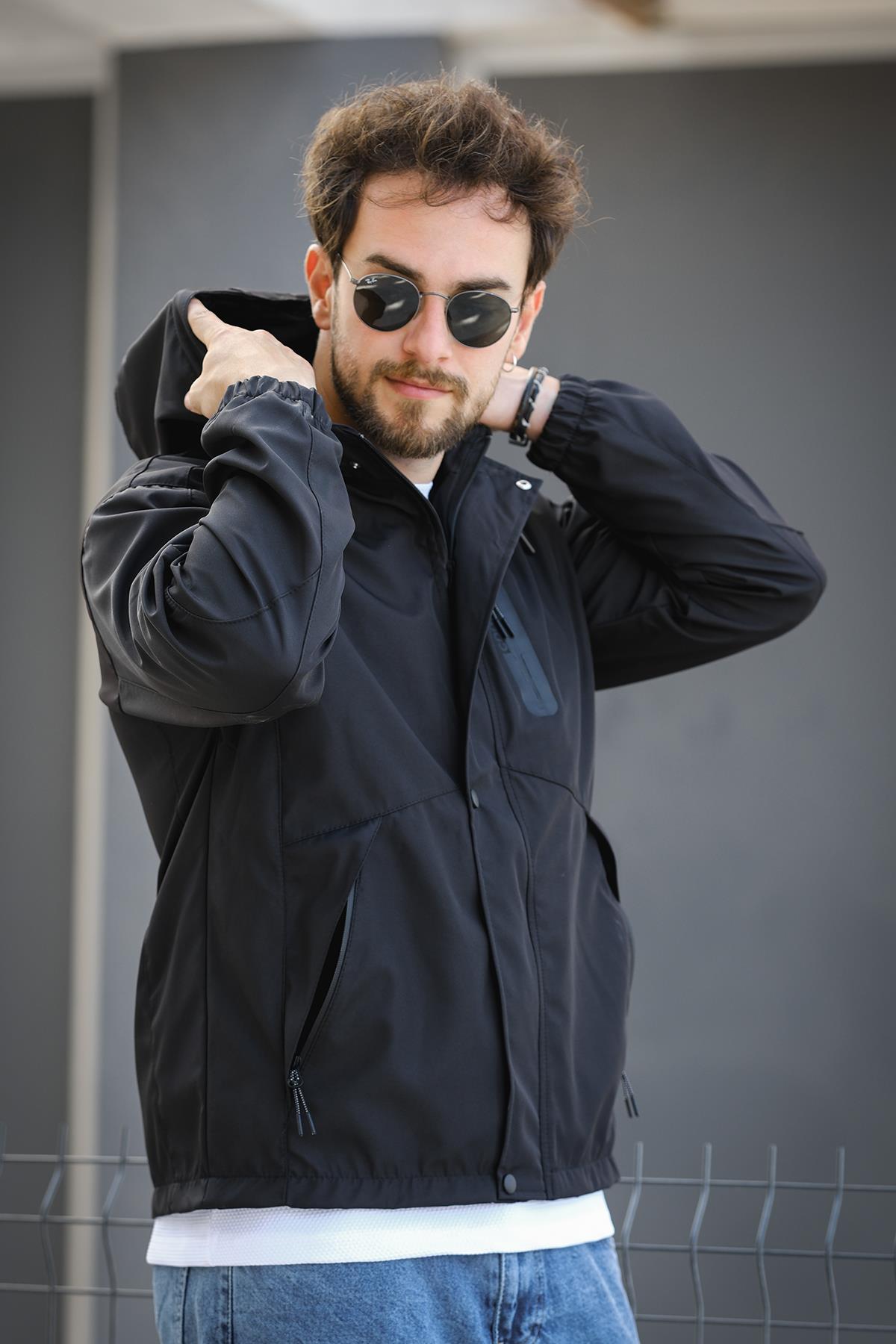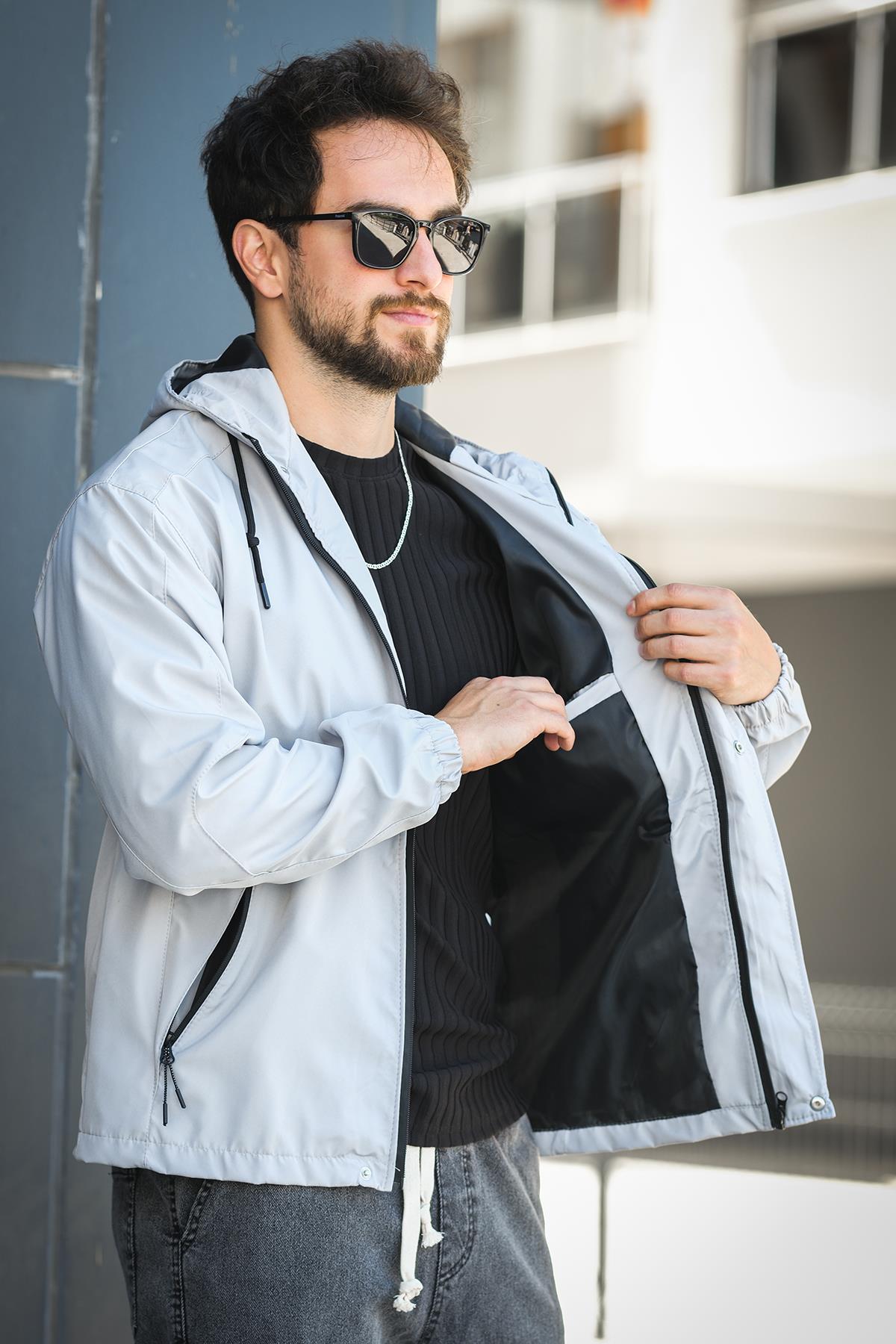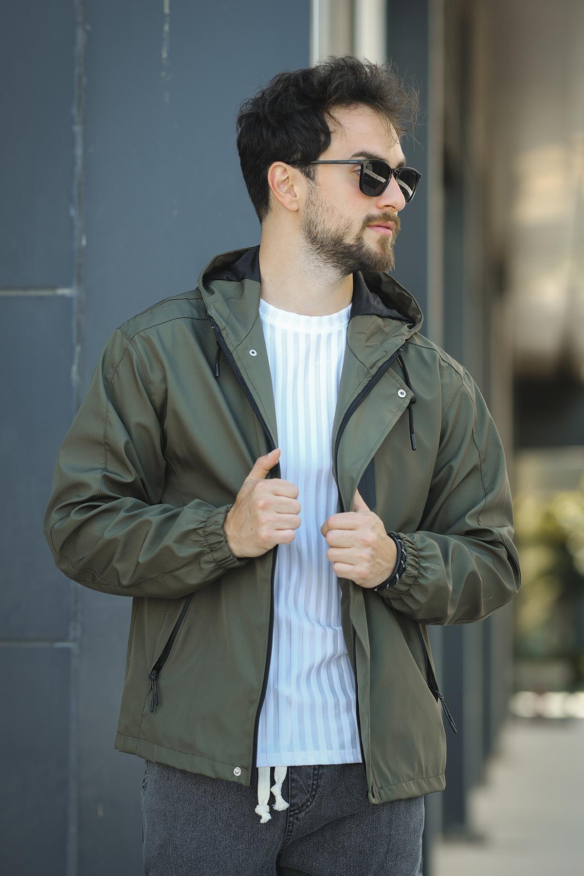 Barky Suya Dayanaklı Fermuar Detaylı Astarlı Erkek Kapüşonlu Mevsimlik Mont Yağmurluk