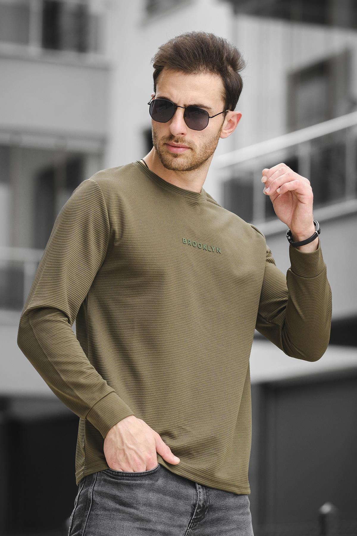 Boccel Brooklyn Baskılı Çizgili Otoban Kumaş Slim Fit Likralı Erkek Sweatshirt