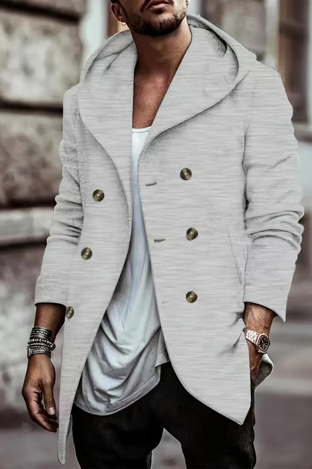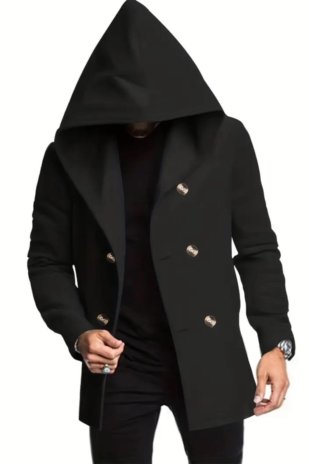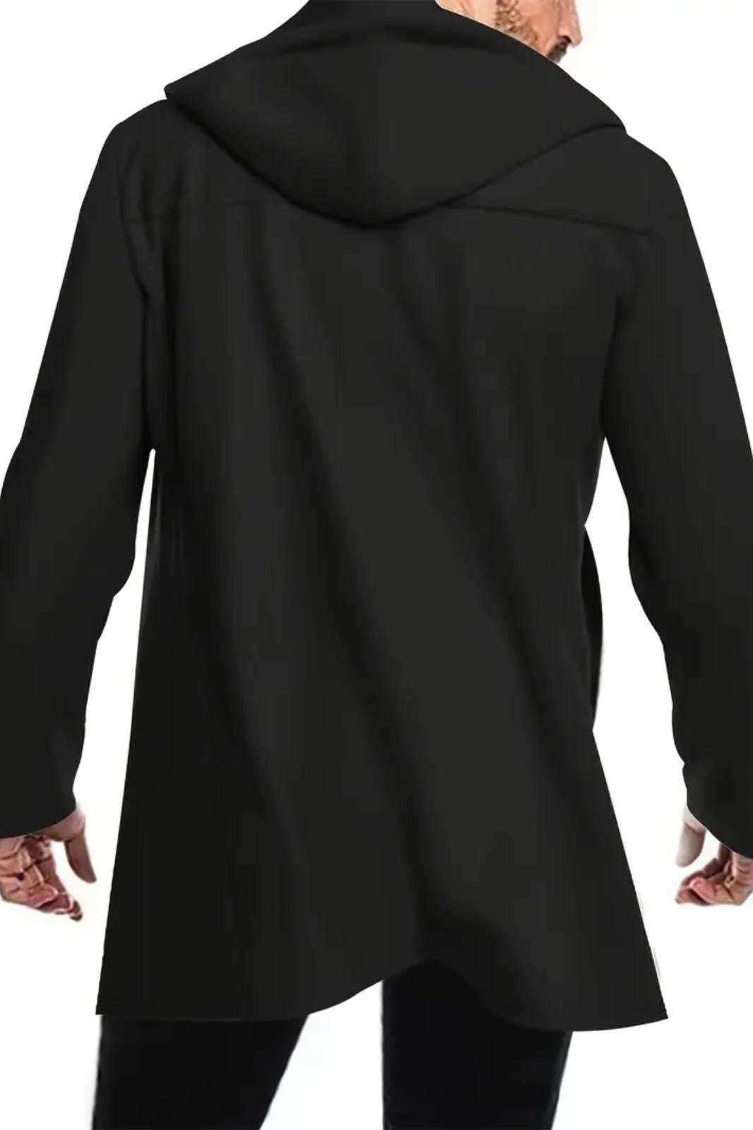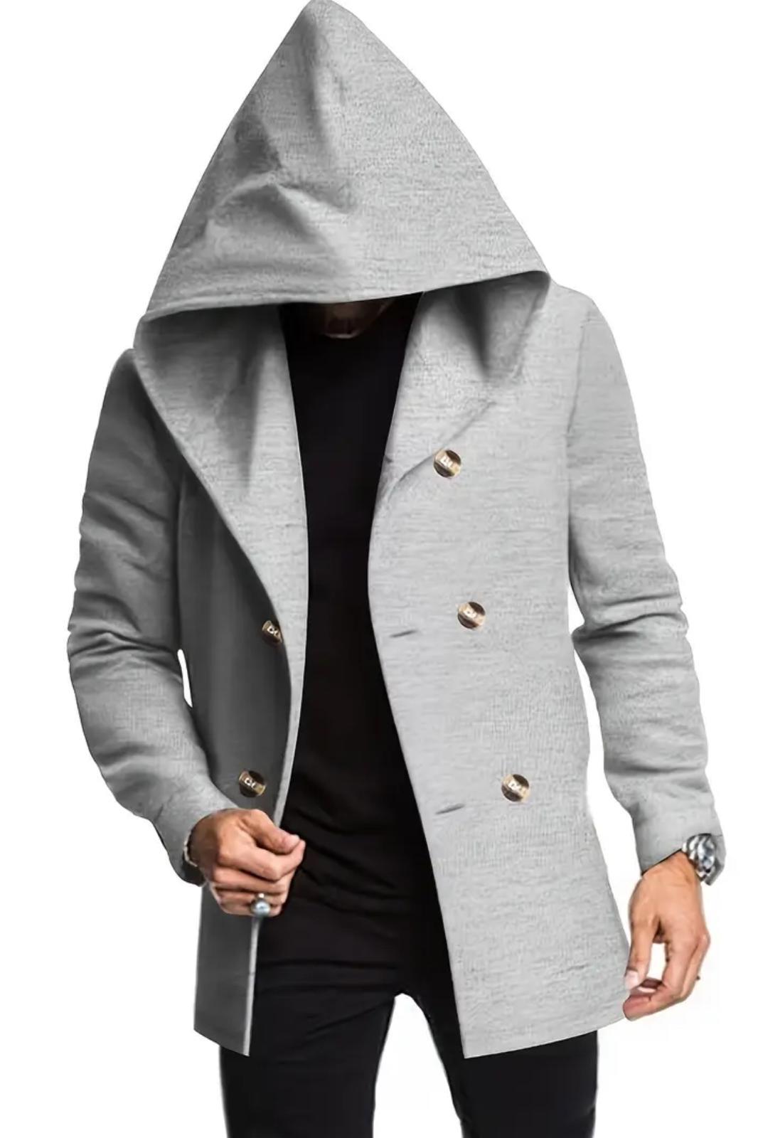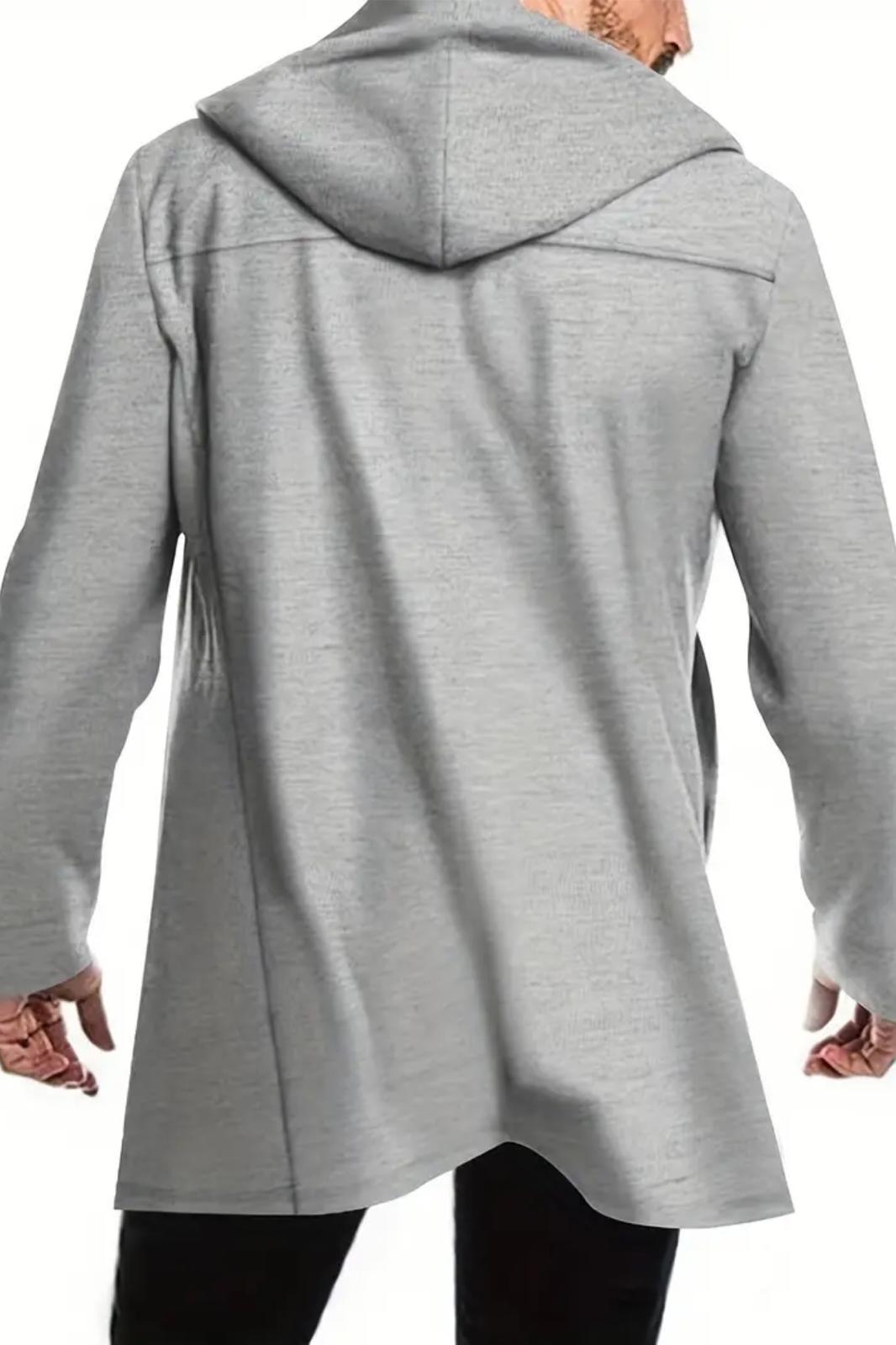 Corry Çelik İnterlok Kumaş Kruvaze Düğmeli Kapüşonlu Erkek Panço Hırka