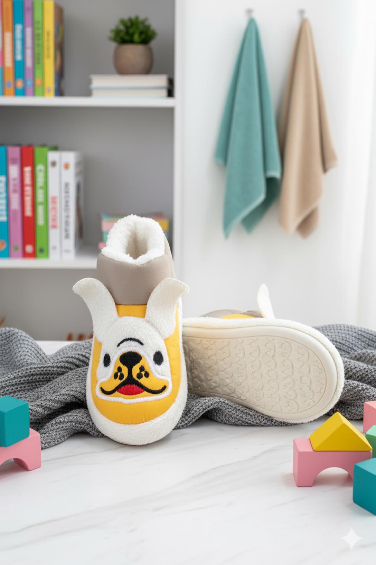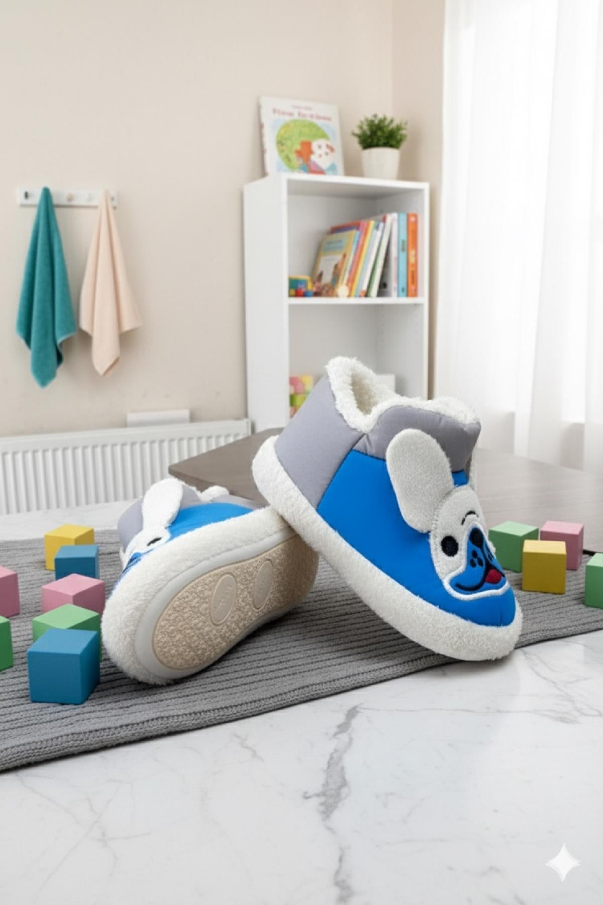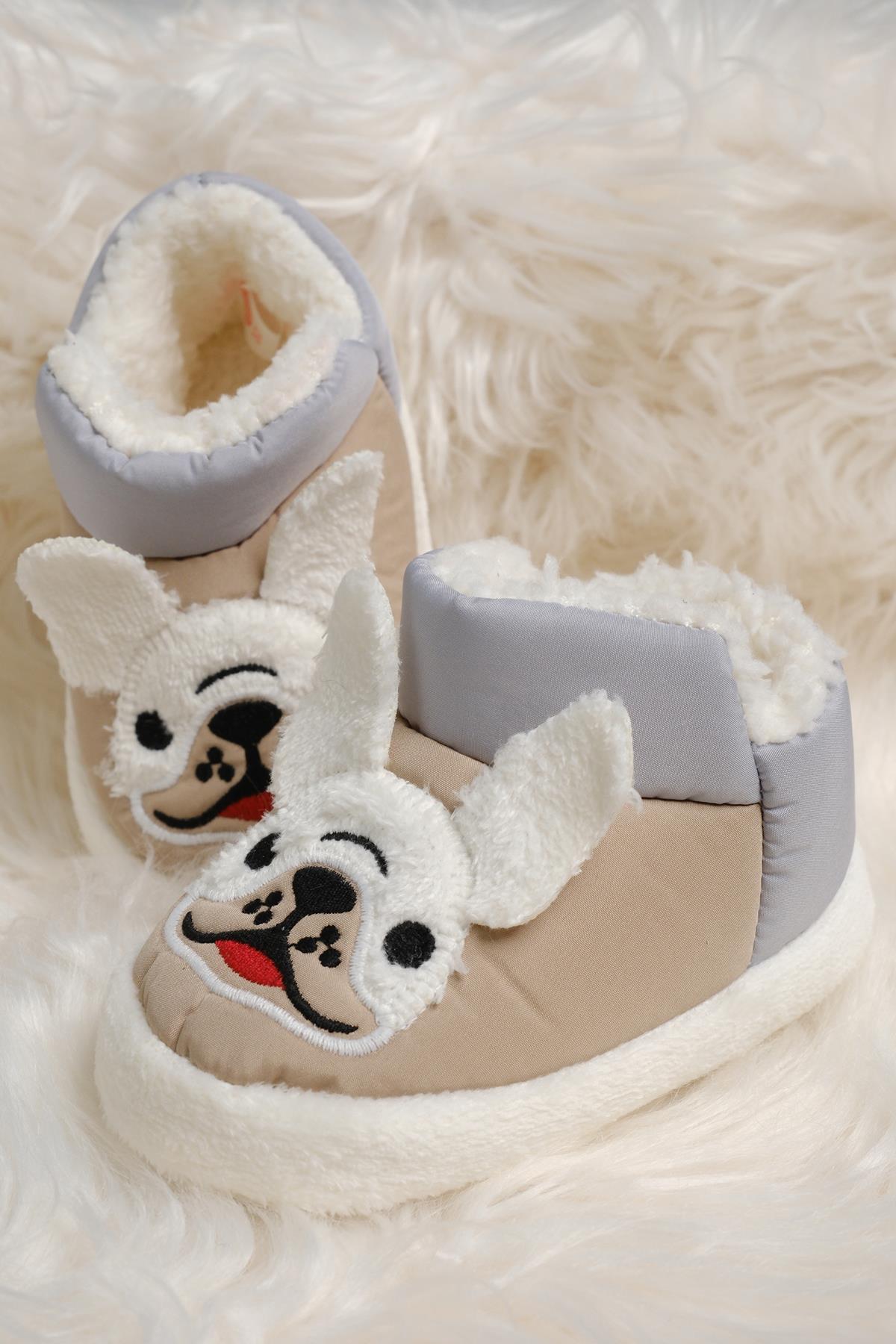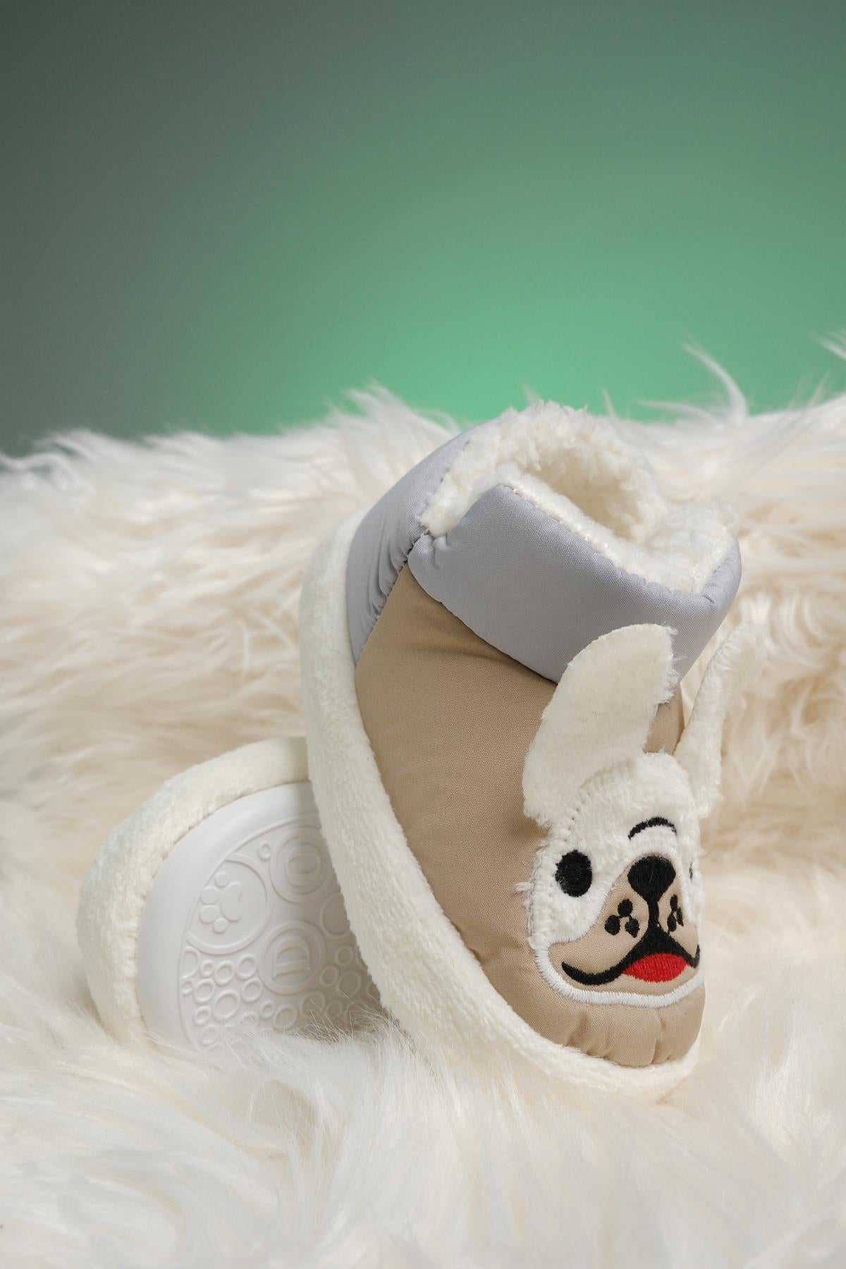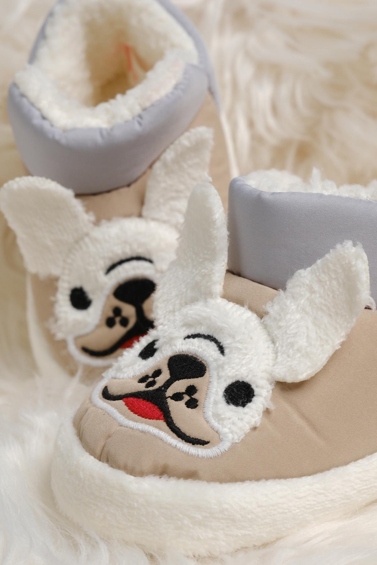 Dogg Desenli Kaydırmaz Taban Su İtici Kürklü Kreş Ev Okul Ayakkabısı Bebek Çocuk Panduf Ev Botu