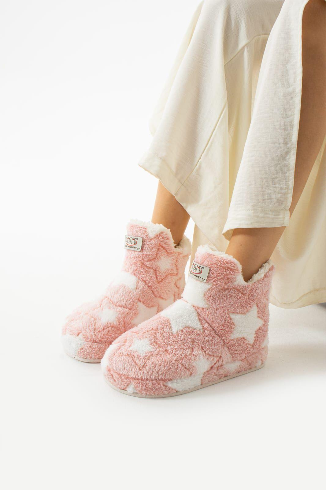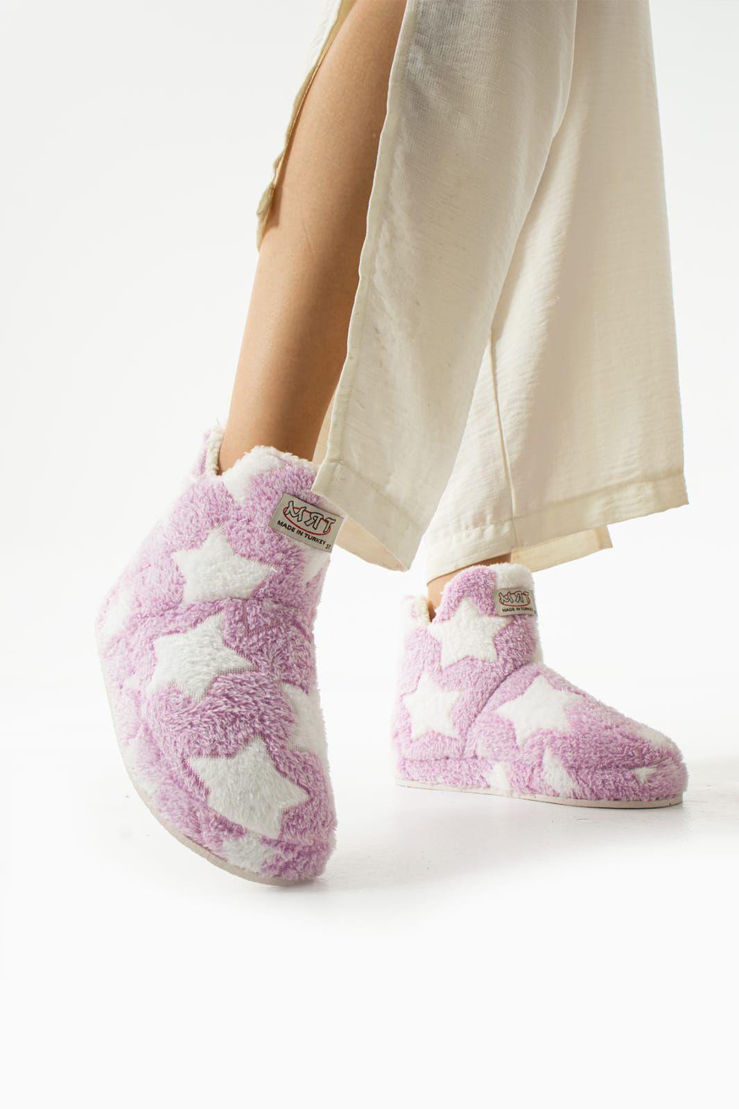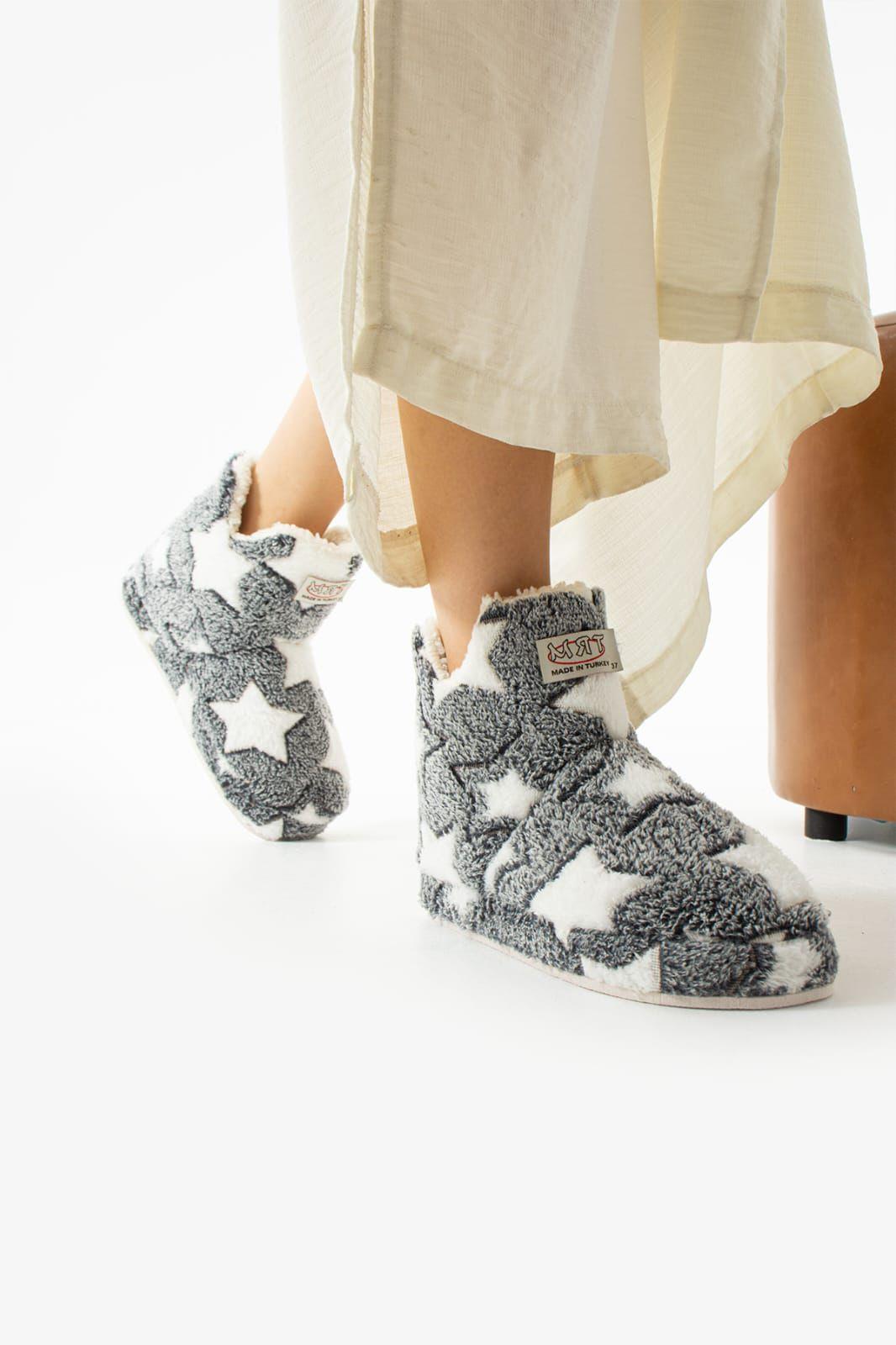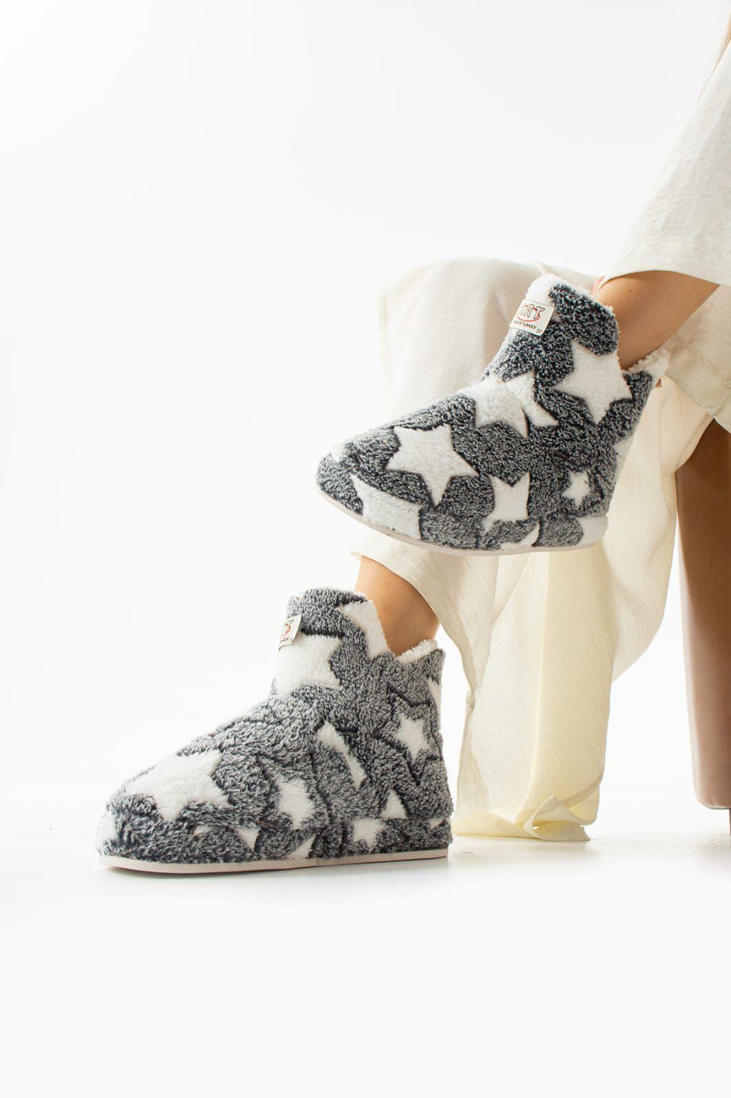 Duccia Kaydırmaz Taban Yumuşak Podufuk Peluş Yıldız Desenli Kadın Panduf Ev Botu