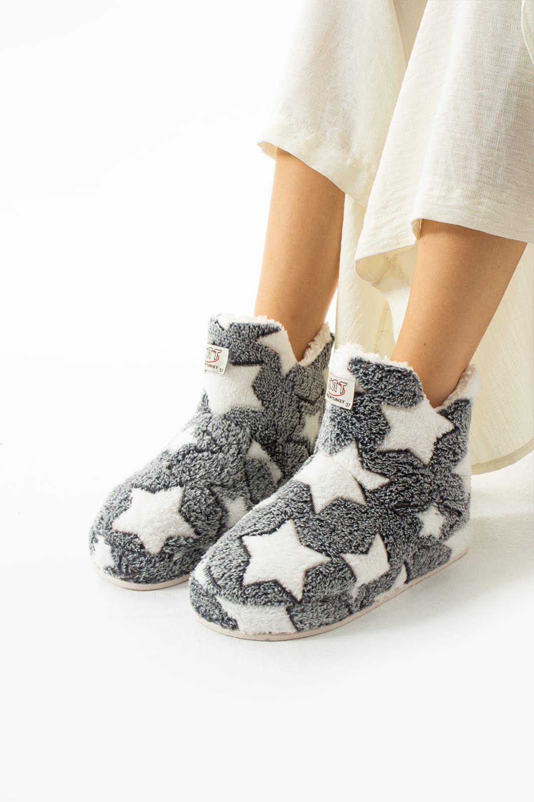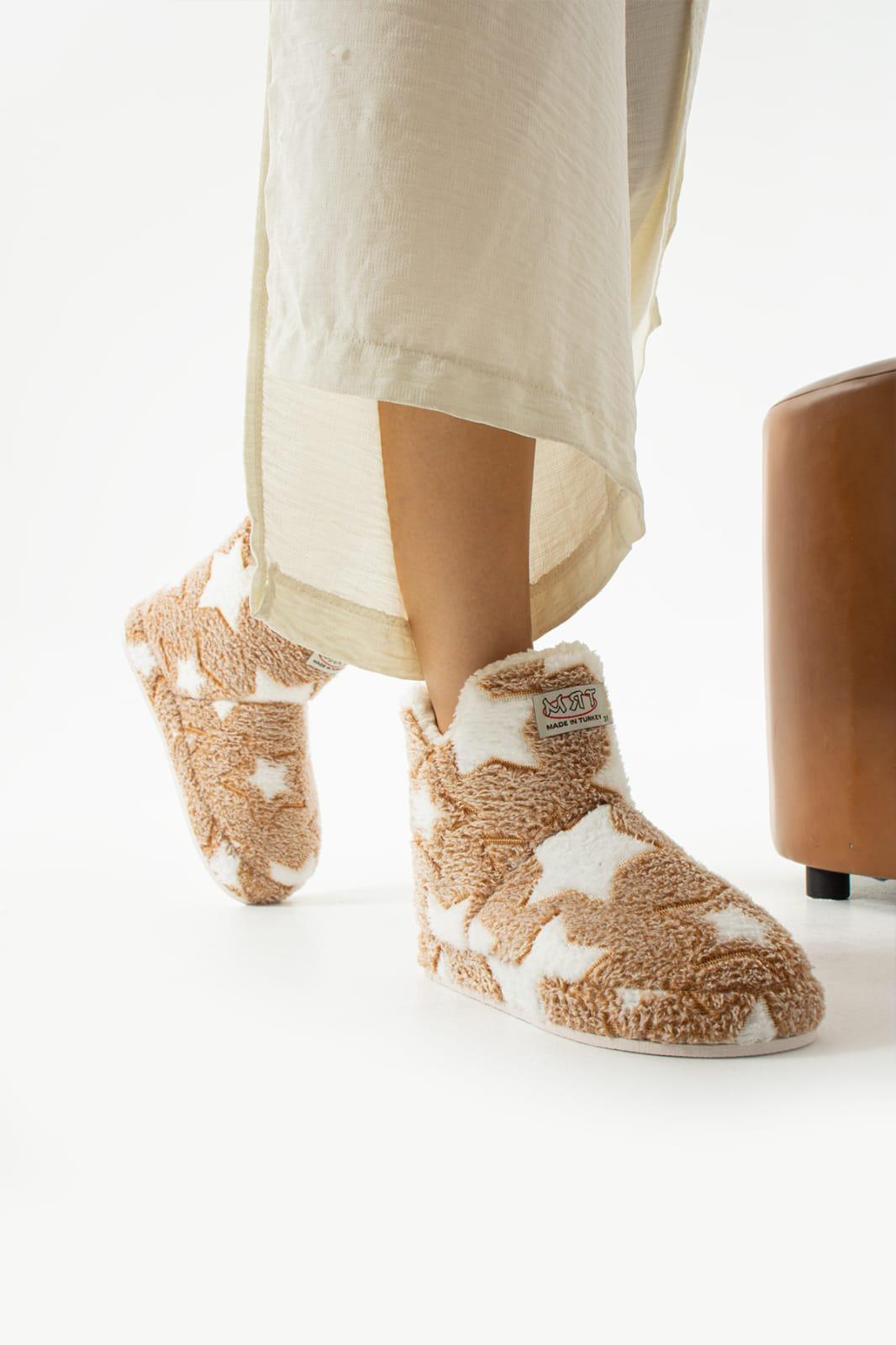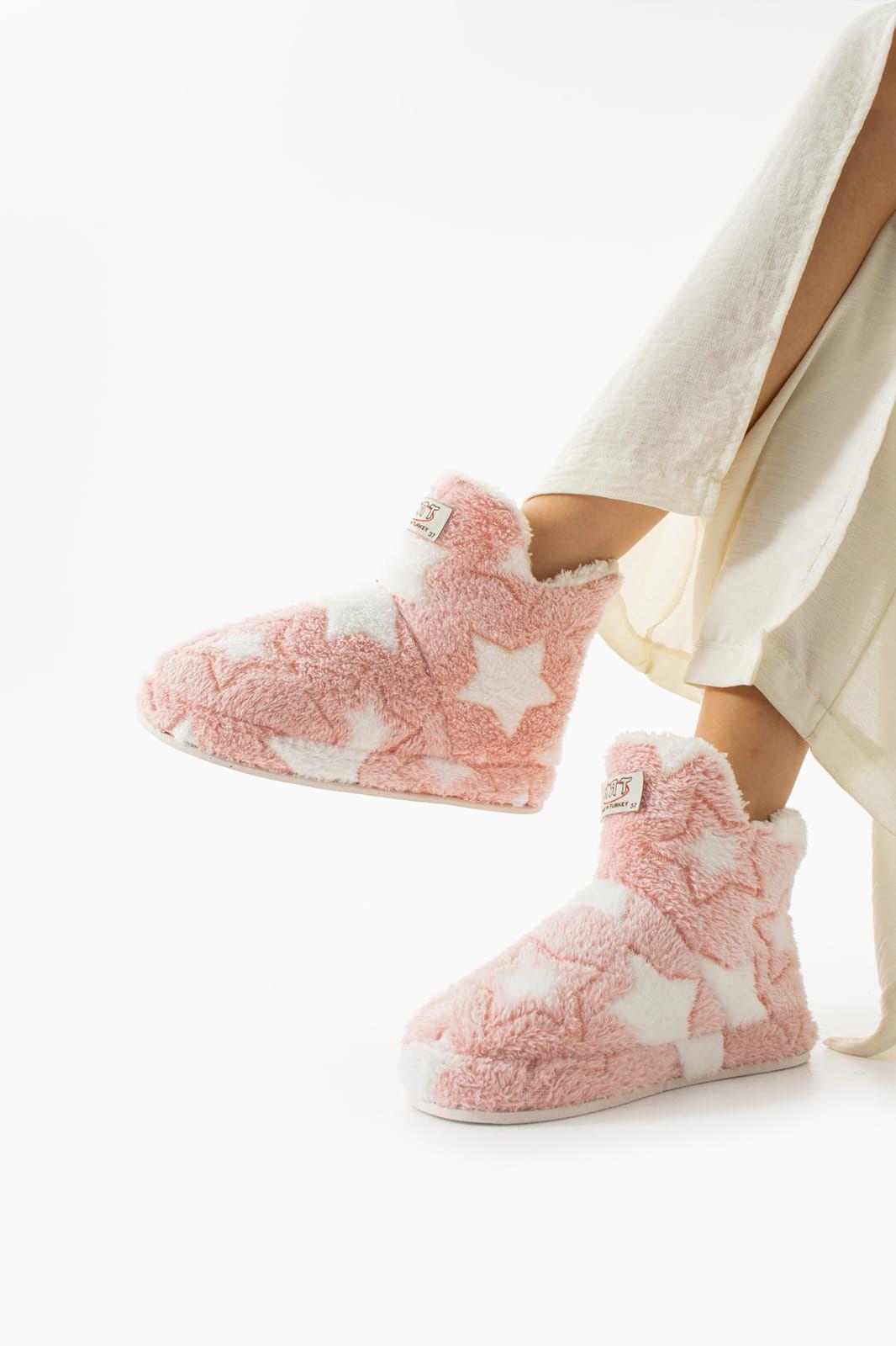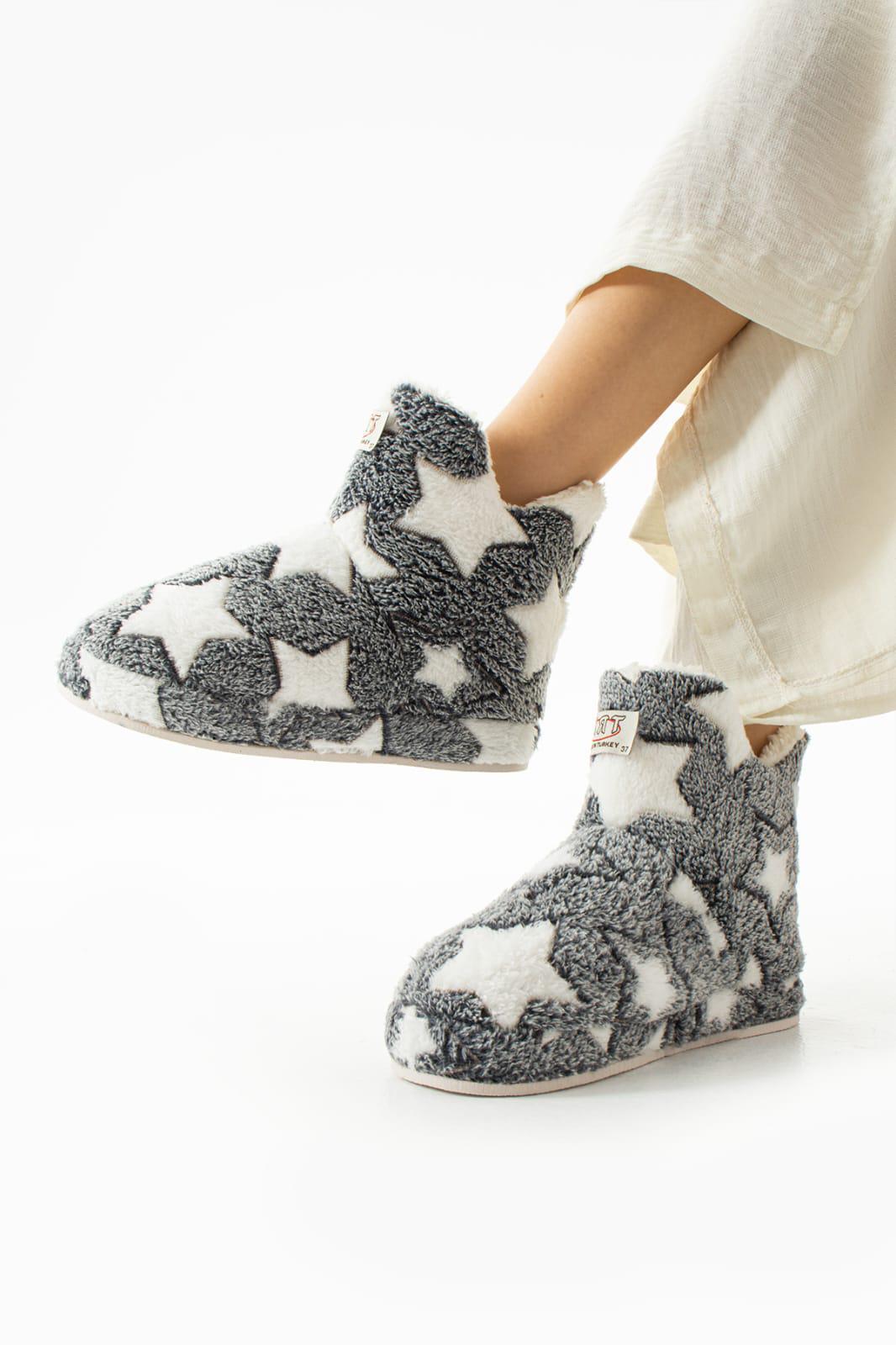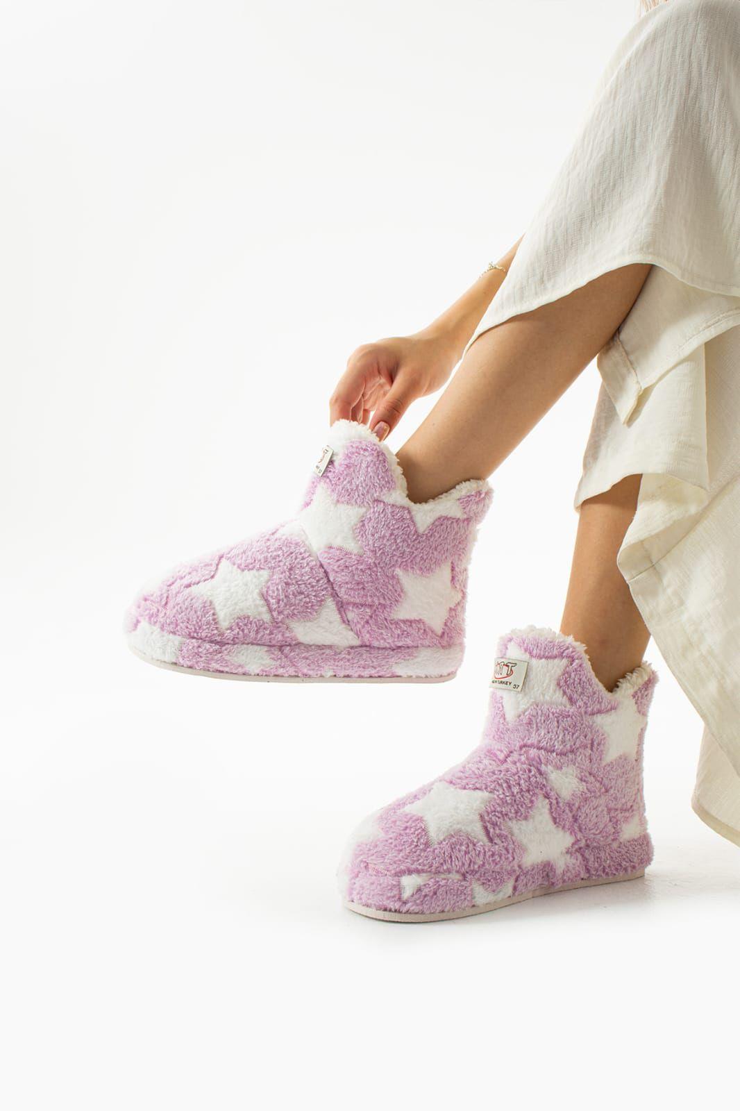 Duccia Kaydırmaz Taban Yumuşak Podufuk Peluş Yıldız Desenli Kadın Panduf Ev Botu