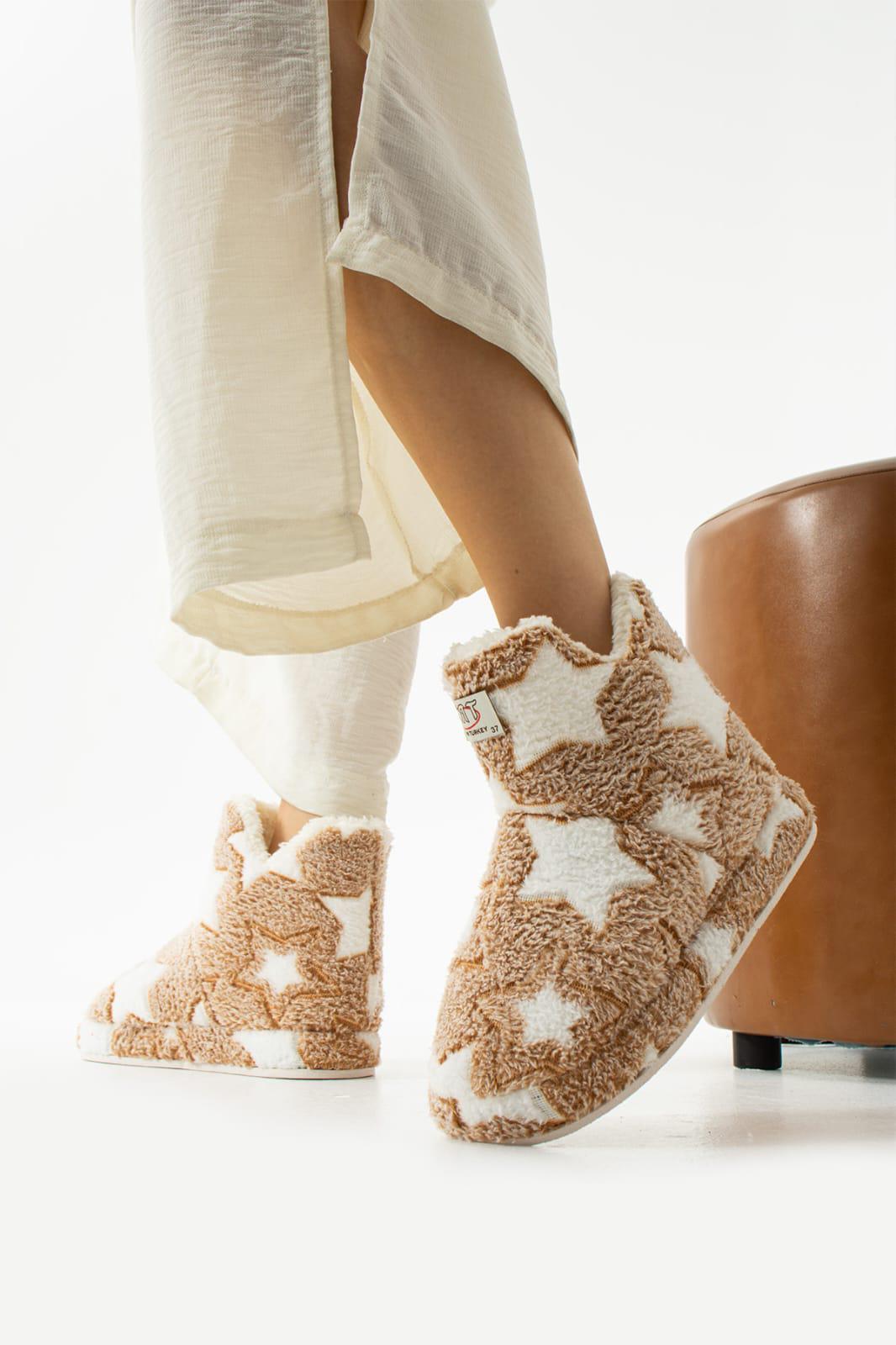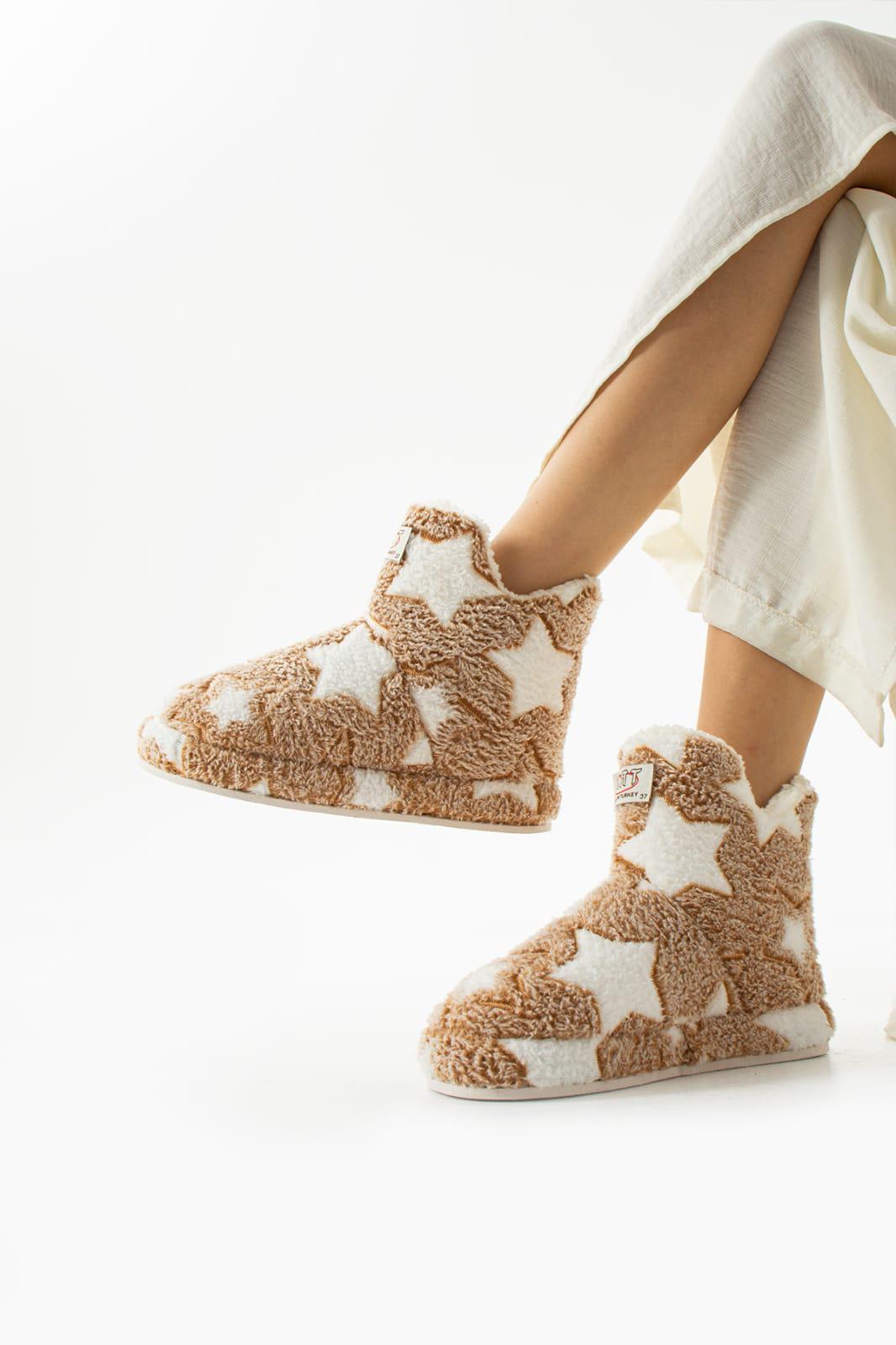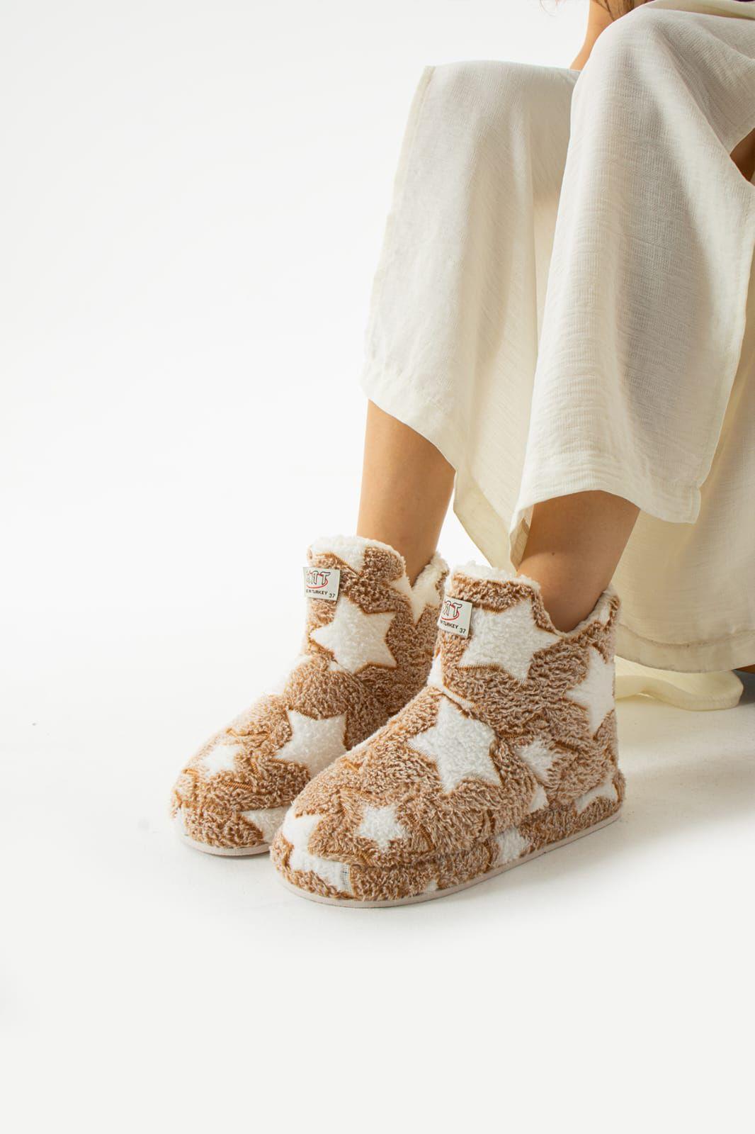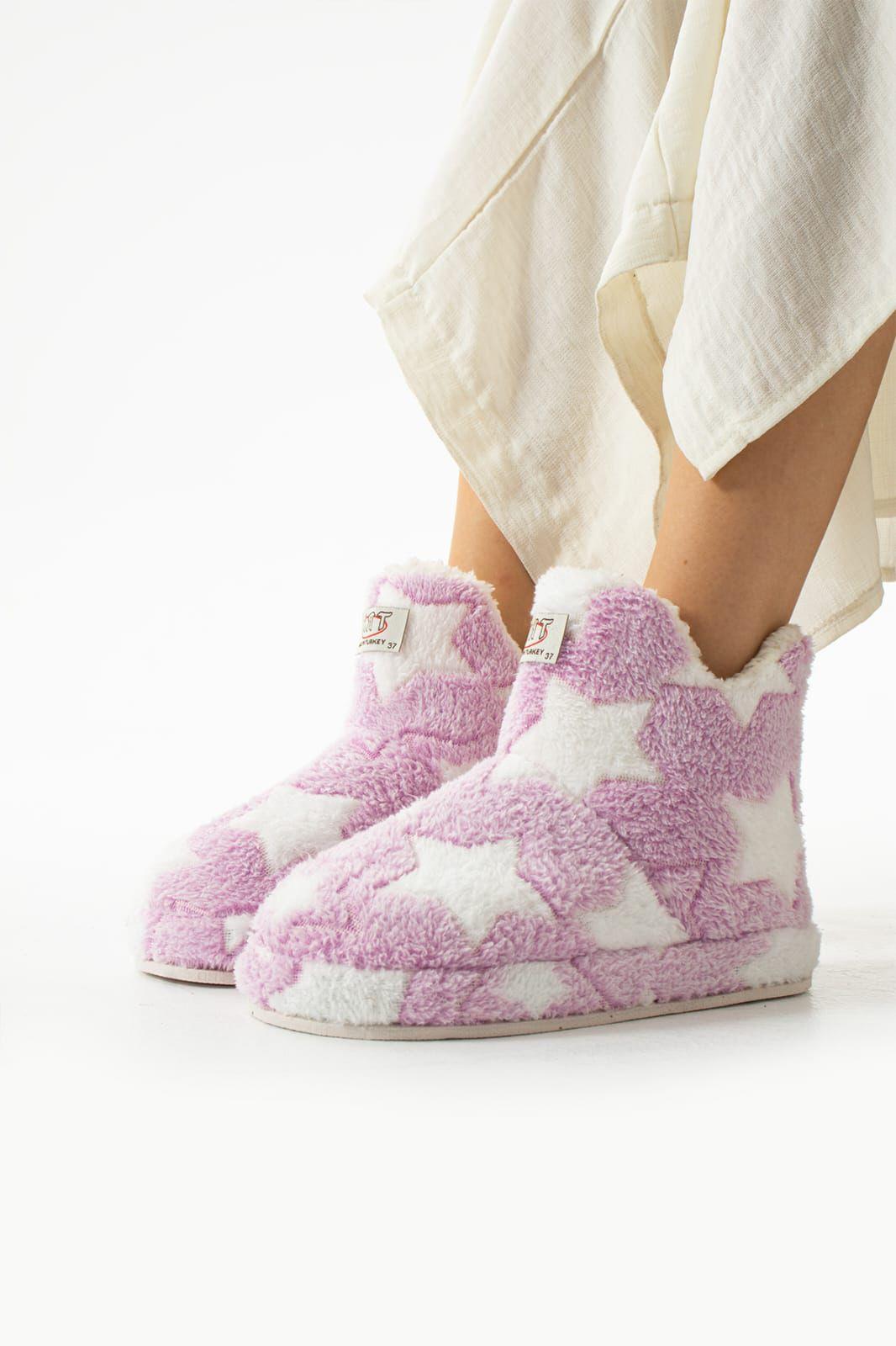 Duccia Kaydırmaz Taban Yumuşak Podufuk Peluş Yıldız Desenli Kadın Panduf Ev Botu