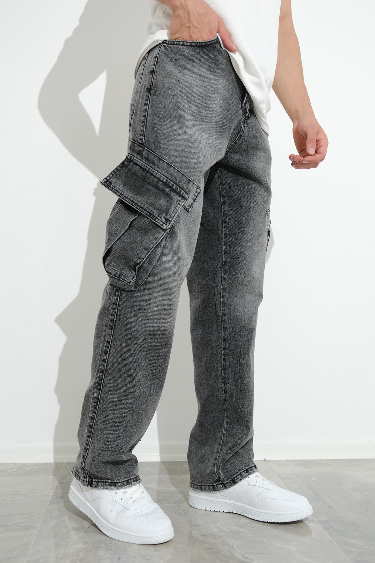 Fierello Kargo Cepli Bol Kesim Baggy Fit Kot Pantolon Jeans