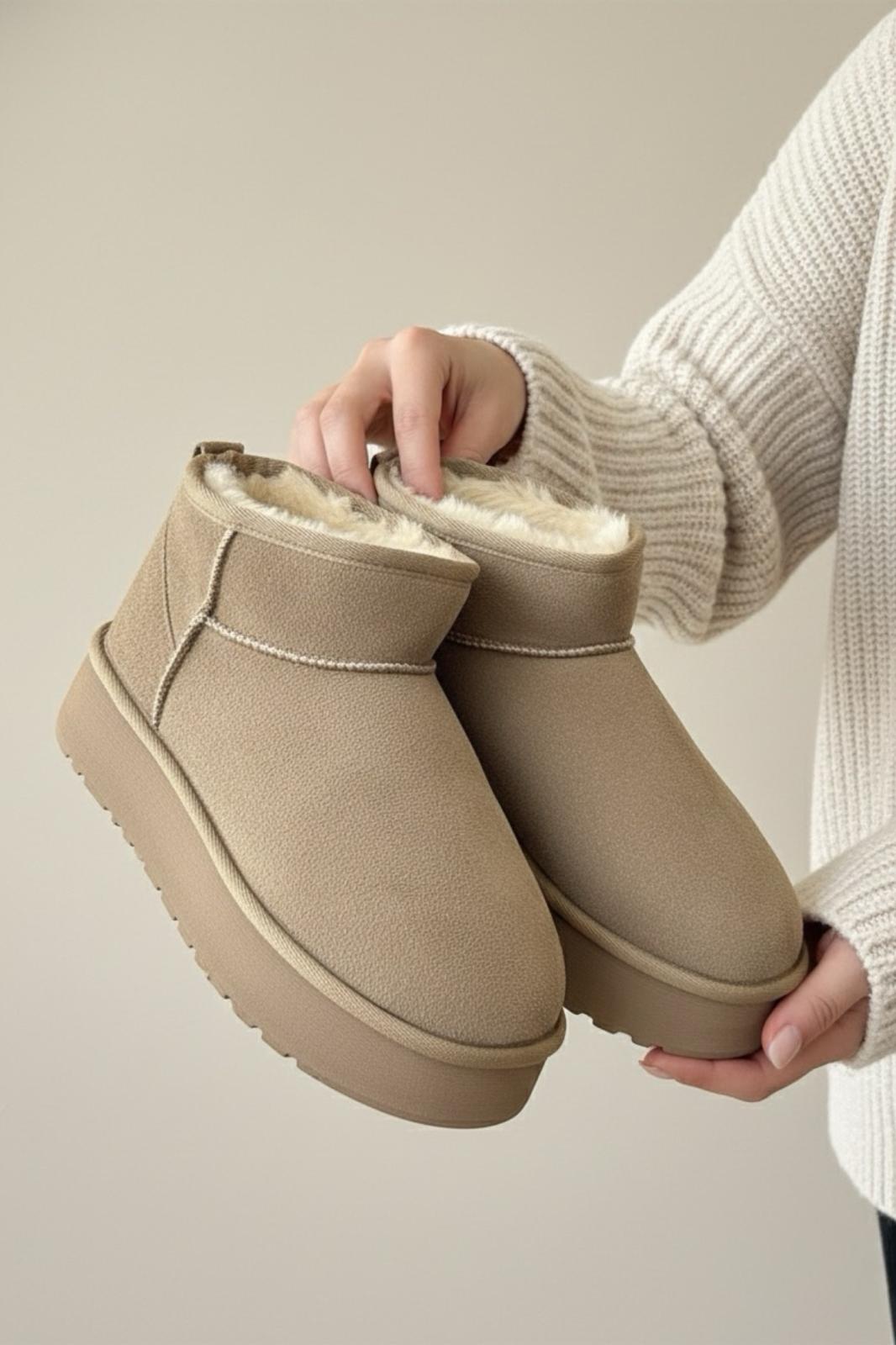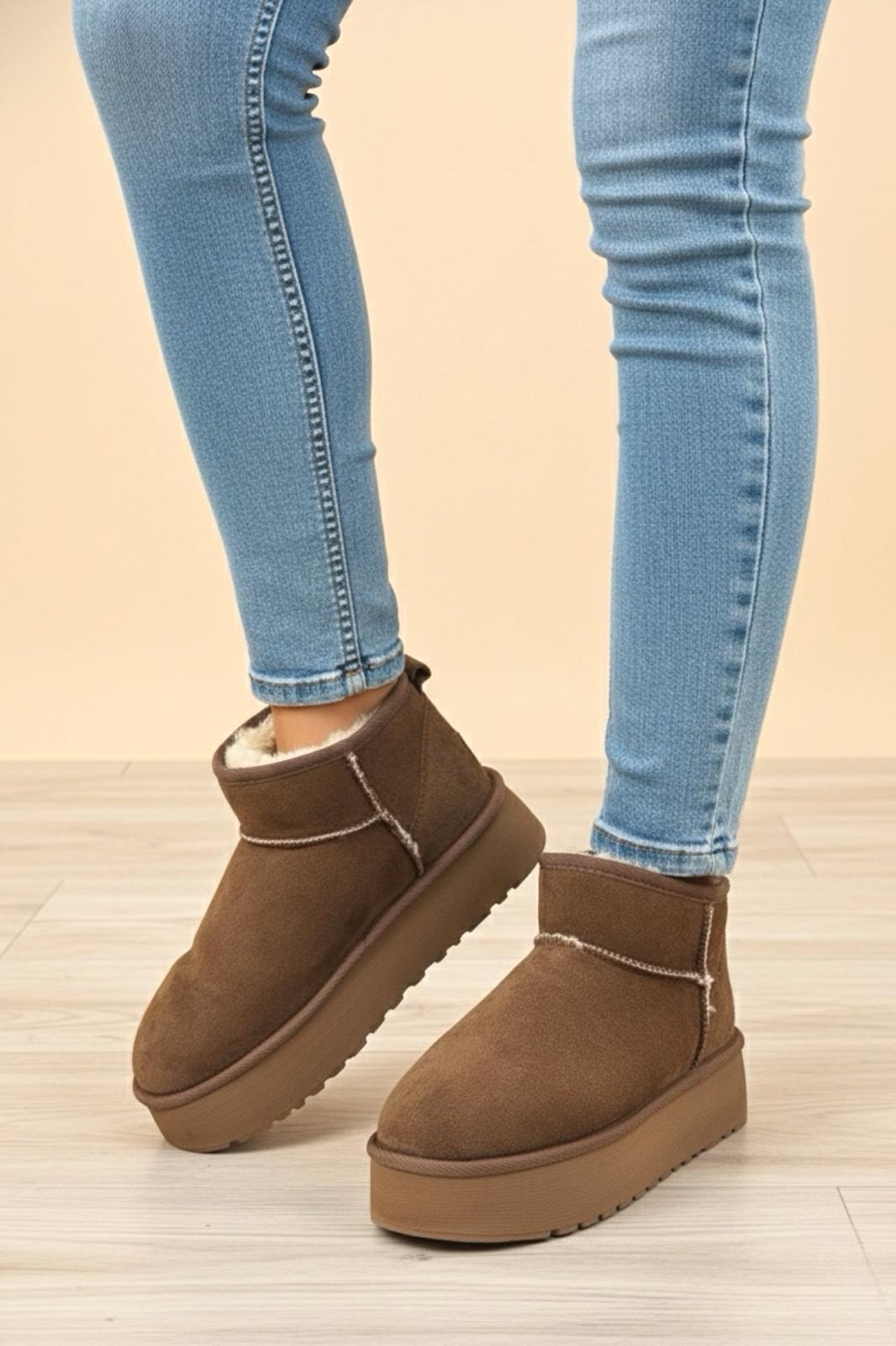 Frz F2150 Süet Içi Kürklü Yünlü Kalın Tabanlı Yüksek Topuklu Kadın Bot