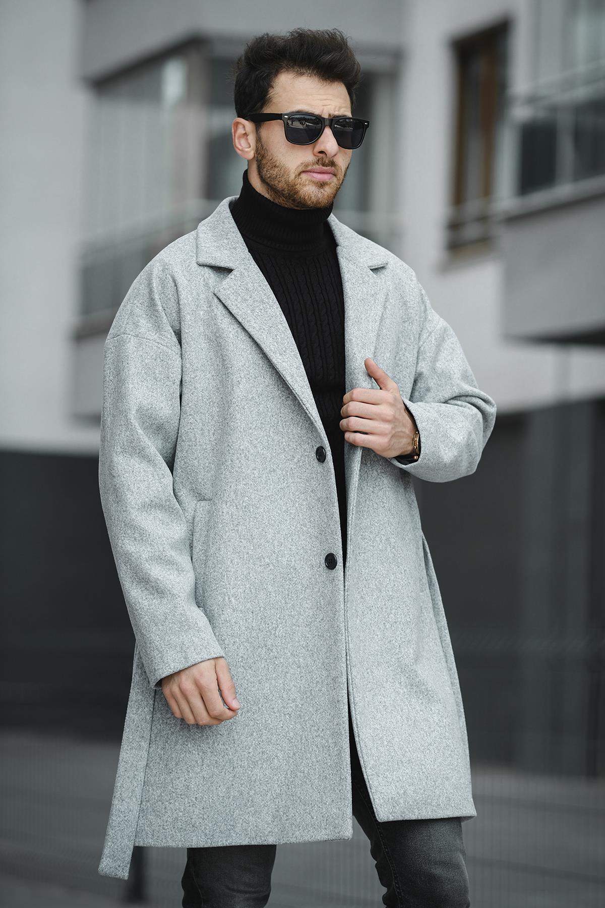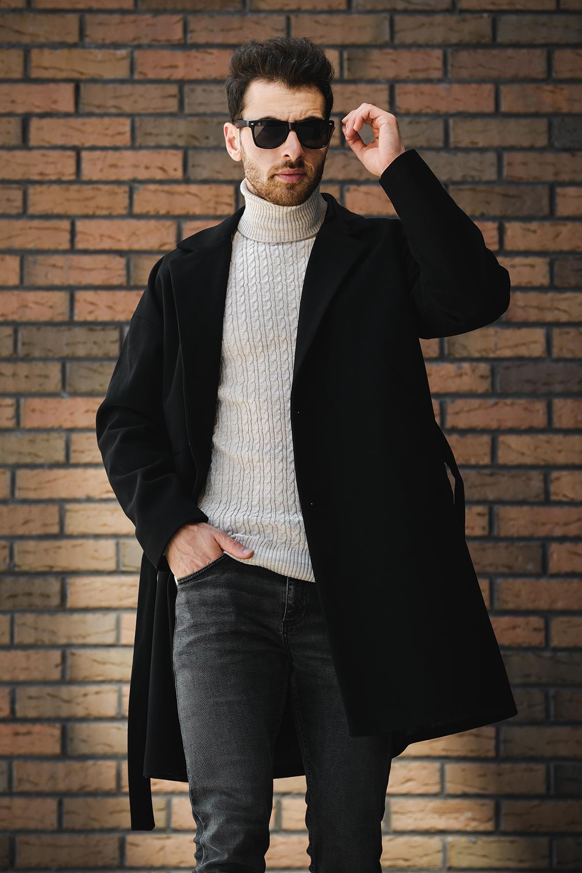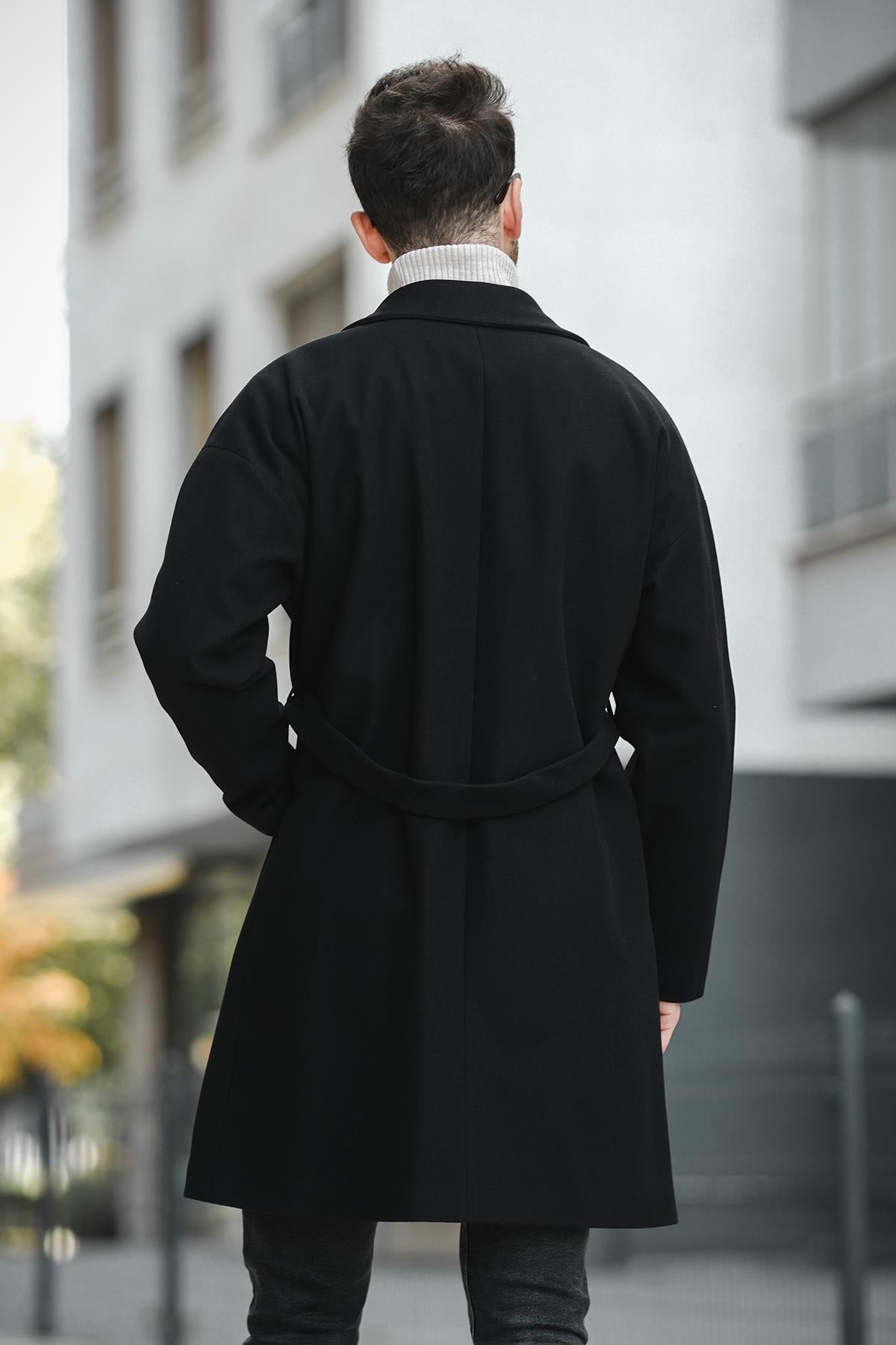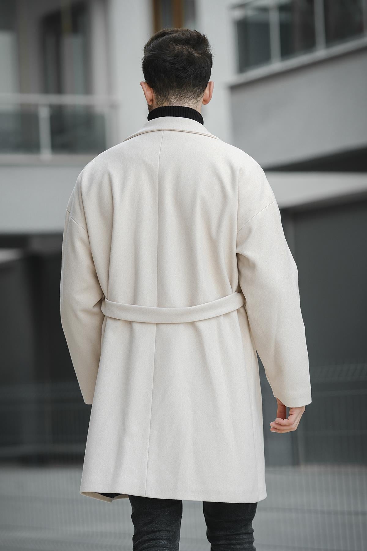 Layun Erkek Kemerli Oversize Rahat Kesim Kaşe Kaban Palto