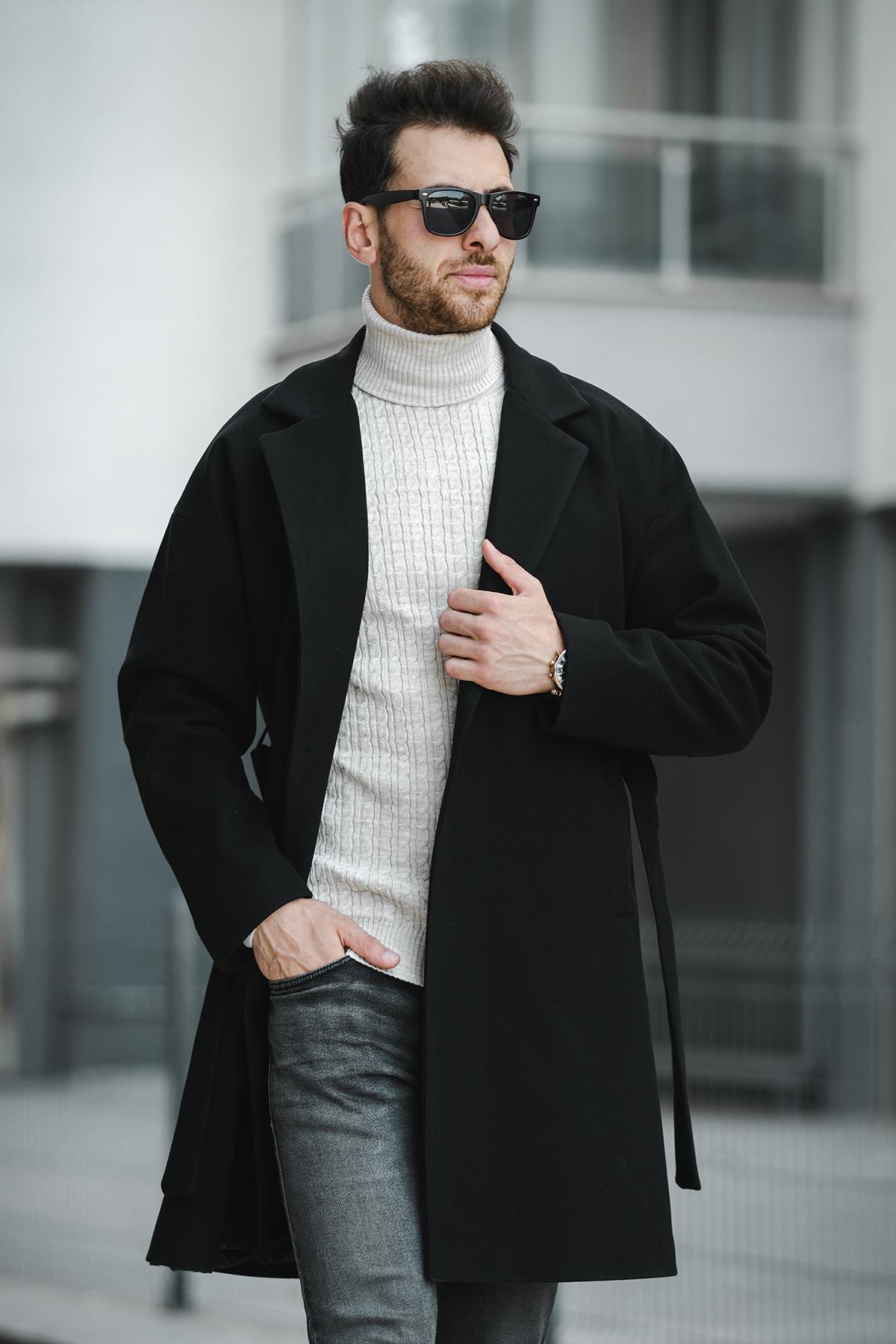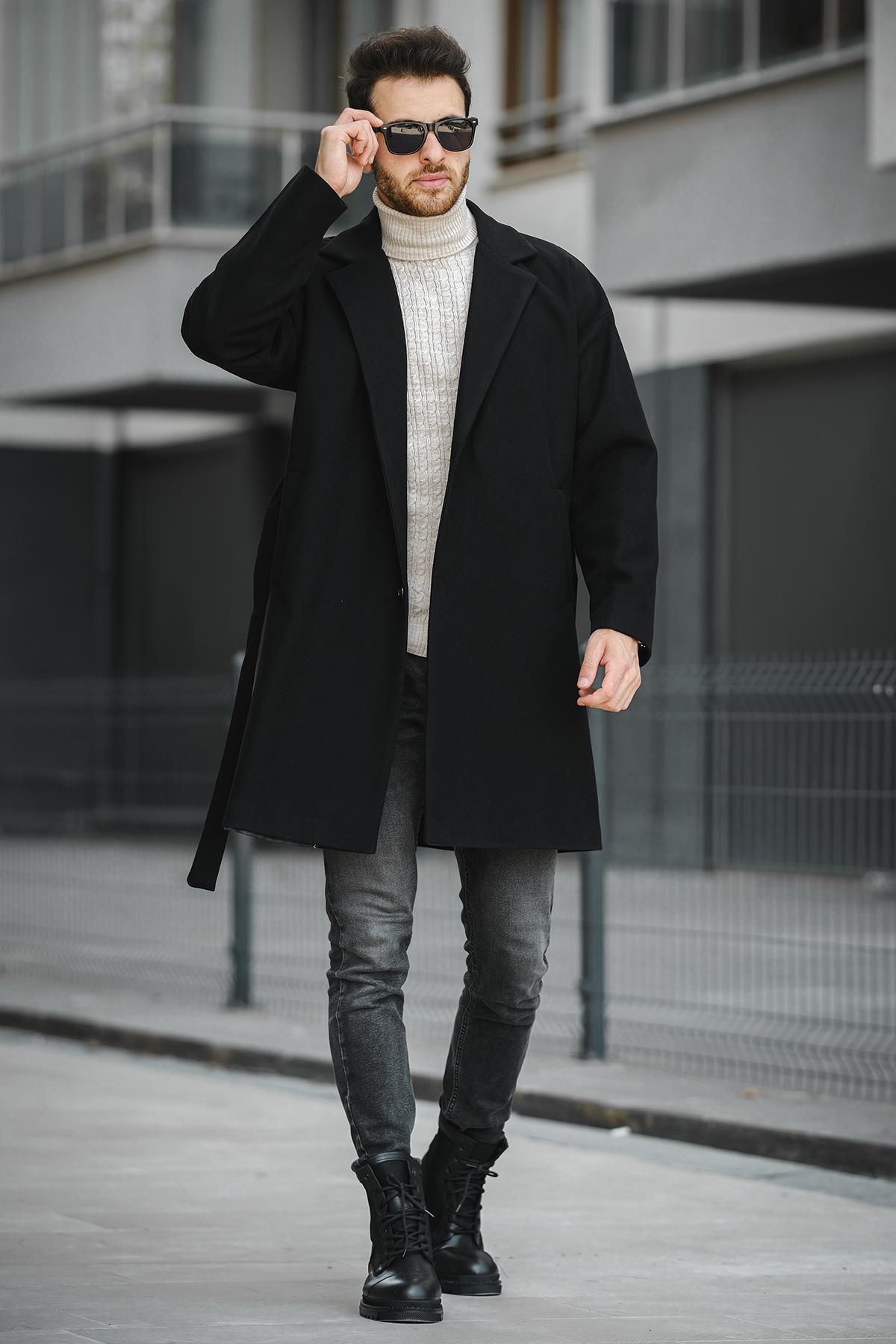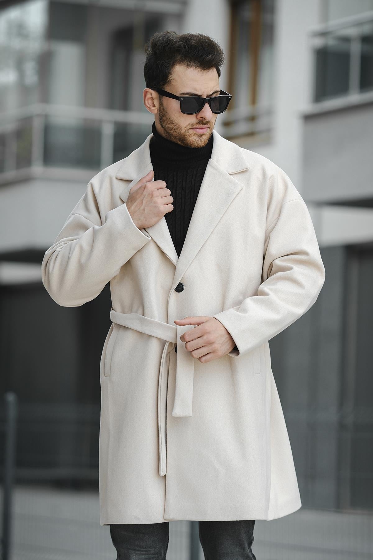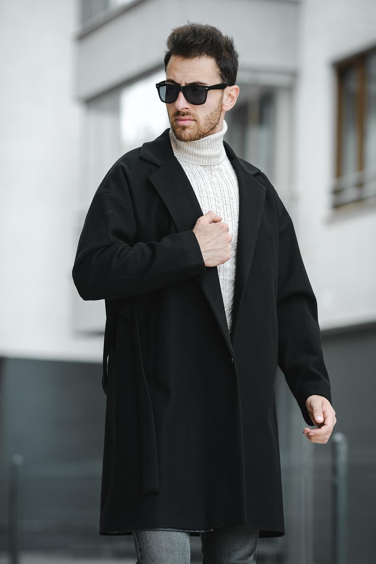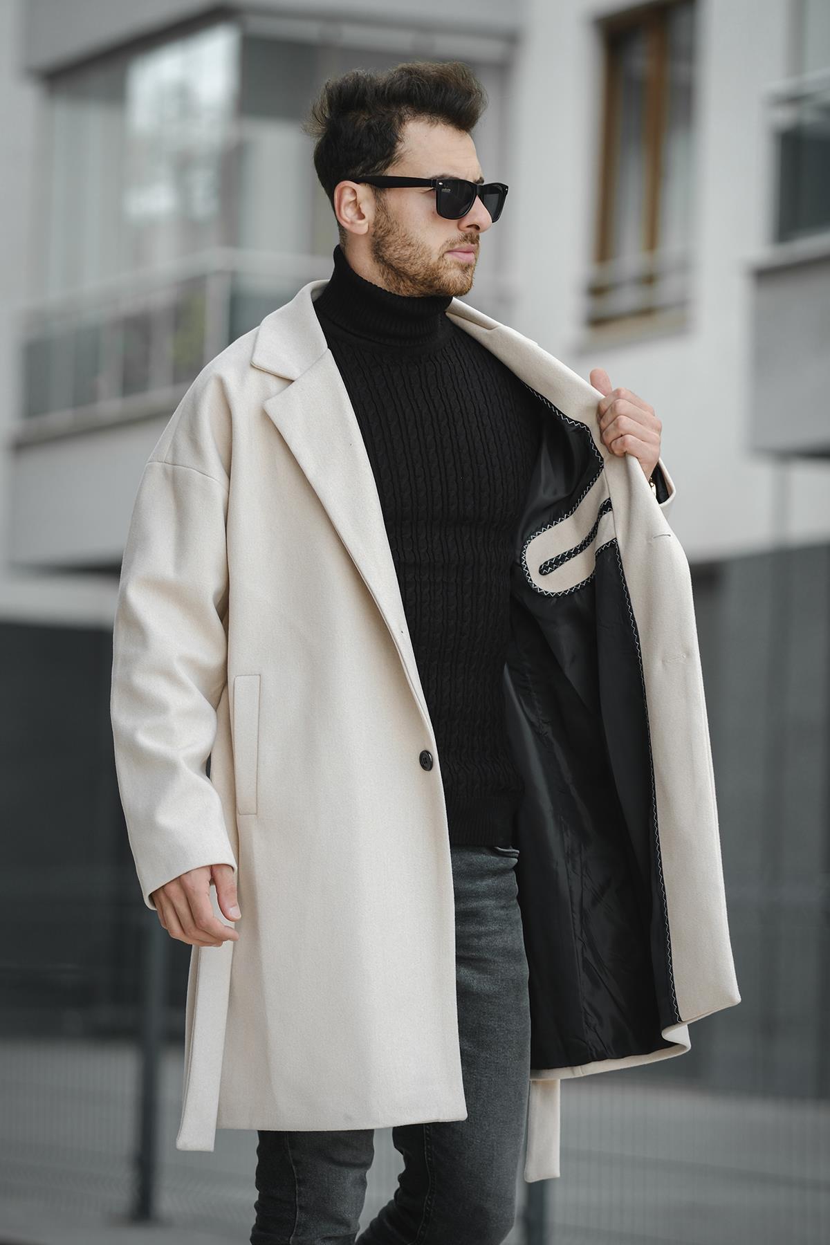 Layun Erkek Kemerli Oversize Rahat Kesim Kaşe Kaban Palto