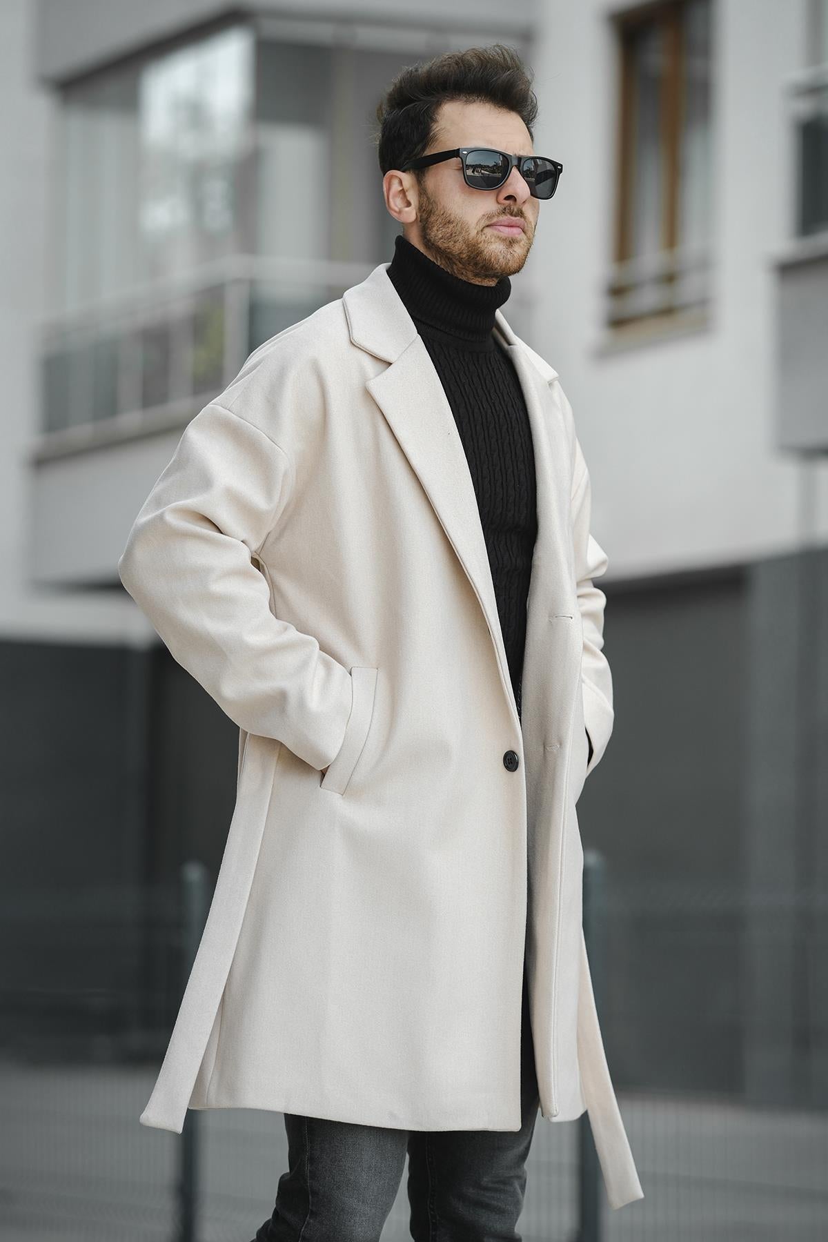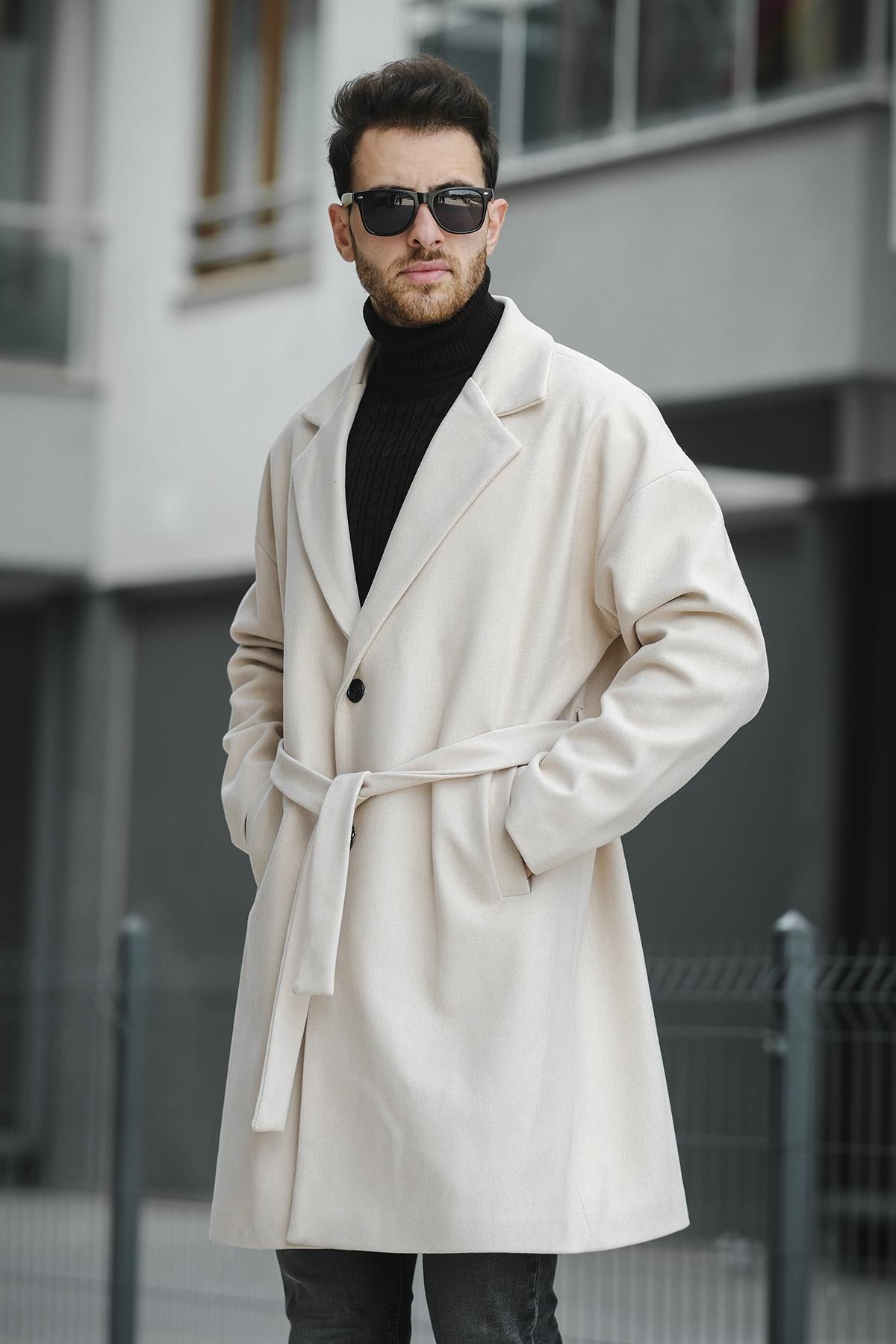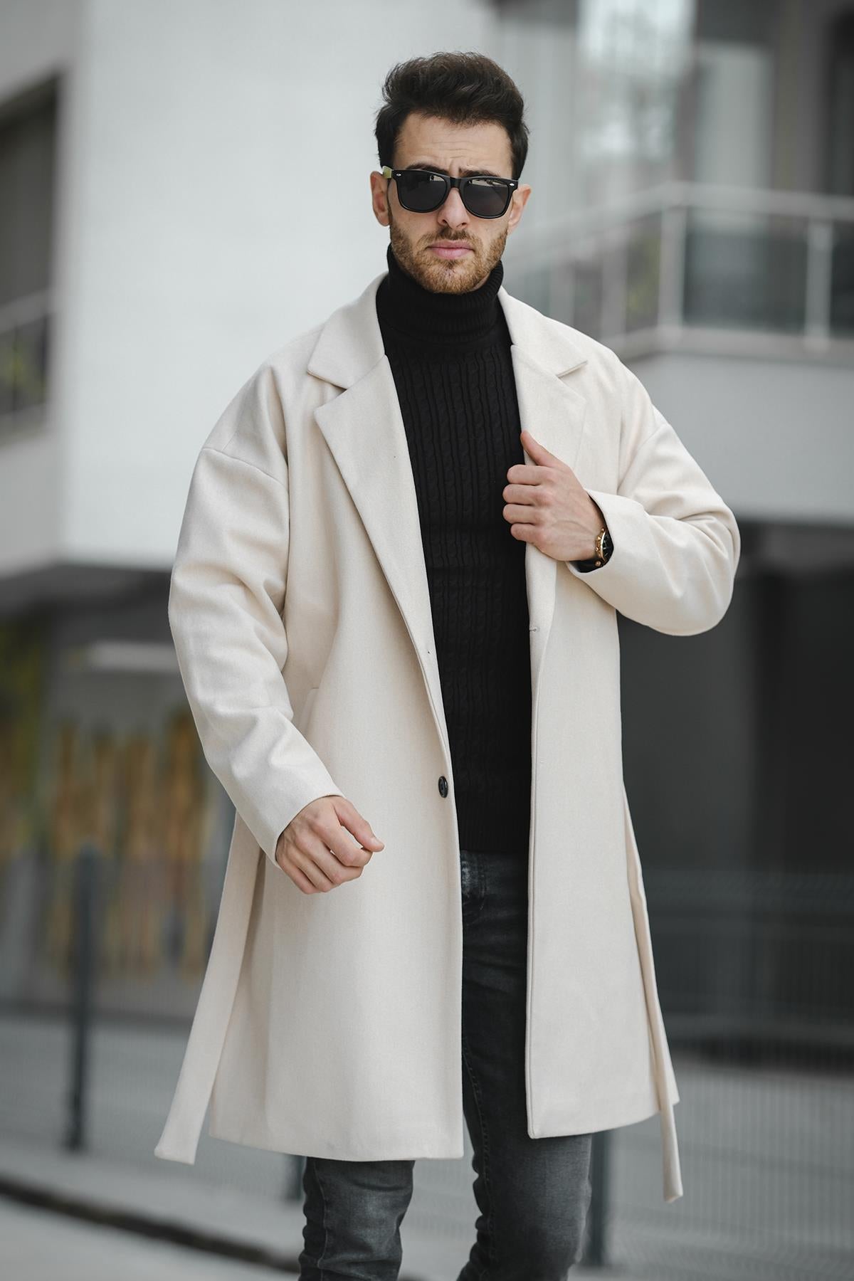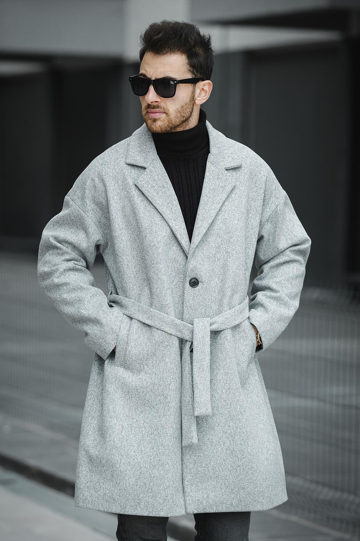 Layun Erkek Kemerli Oversize Rahat Kesim Kaşe Kaban Palto