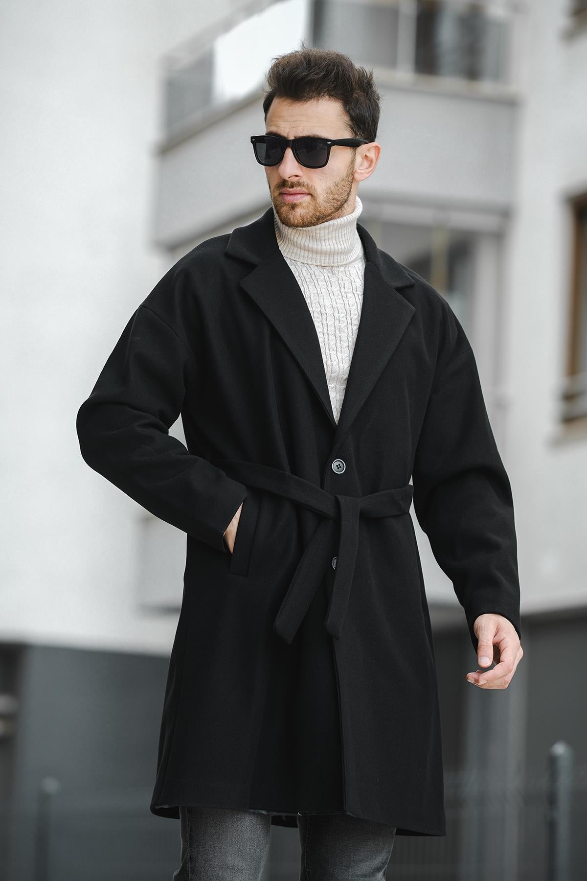 Layun Erkek Kemerli Oversize Rahat Kesim Kaşe Kaban Palto