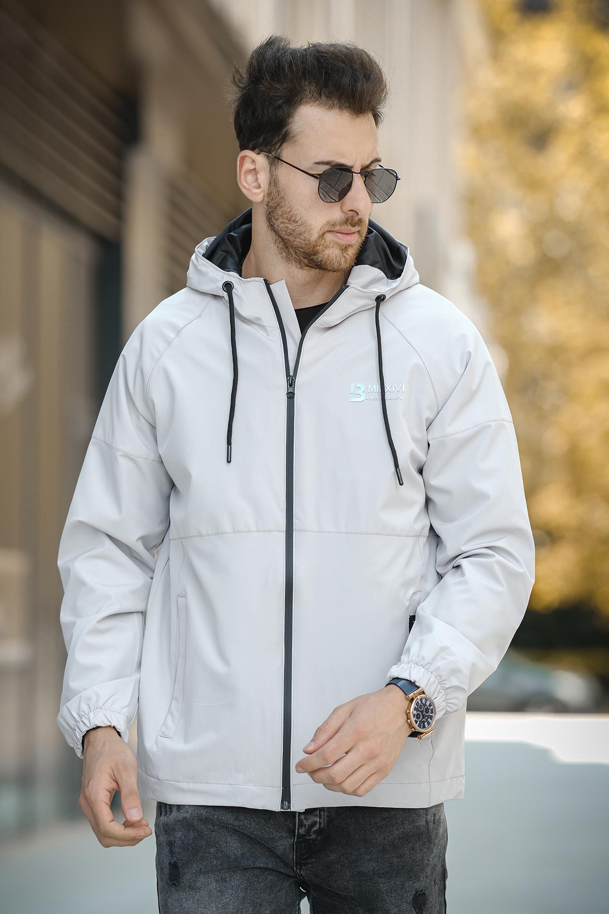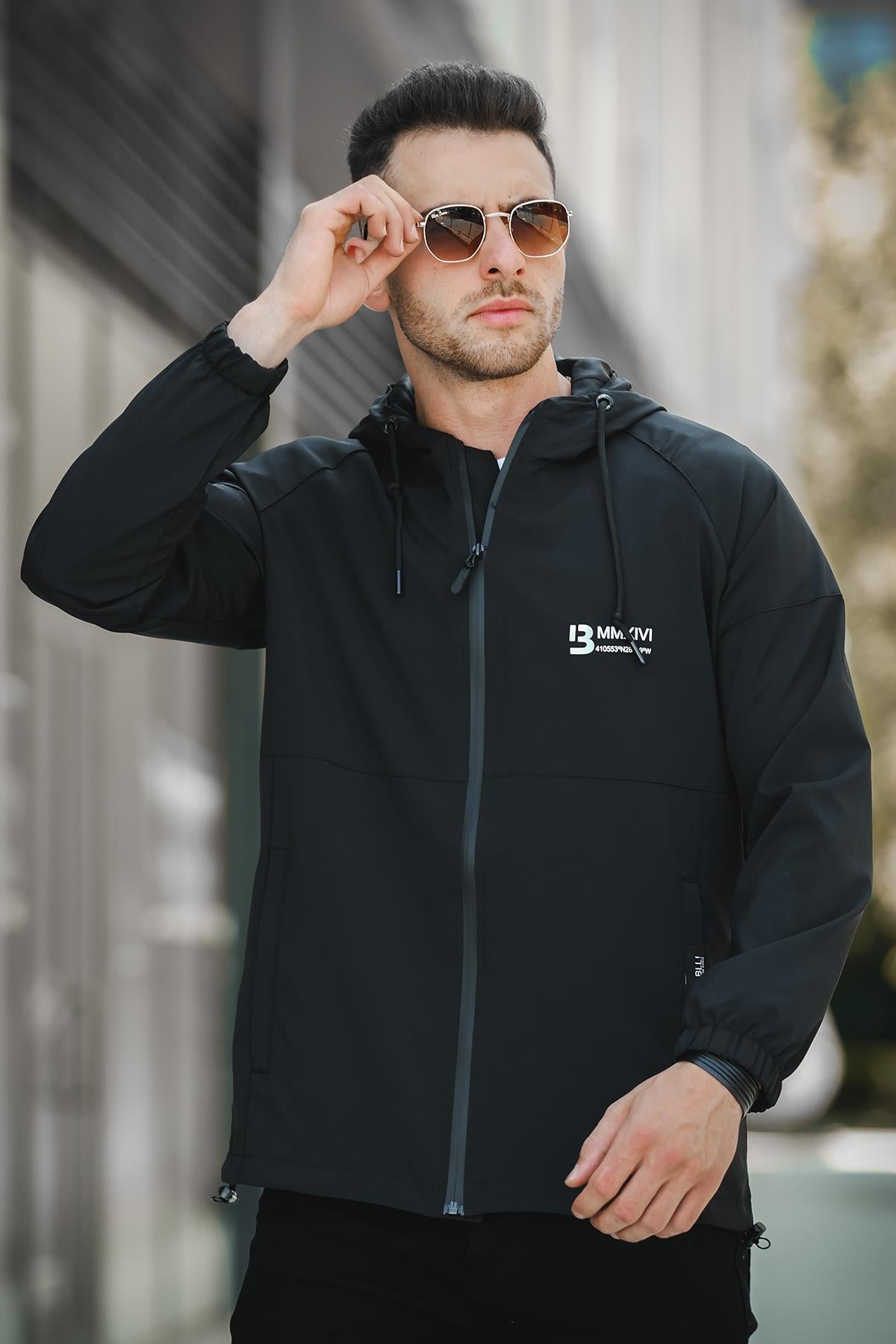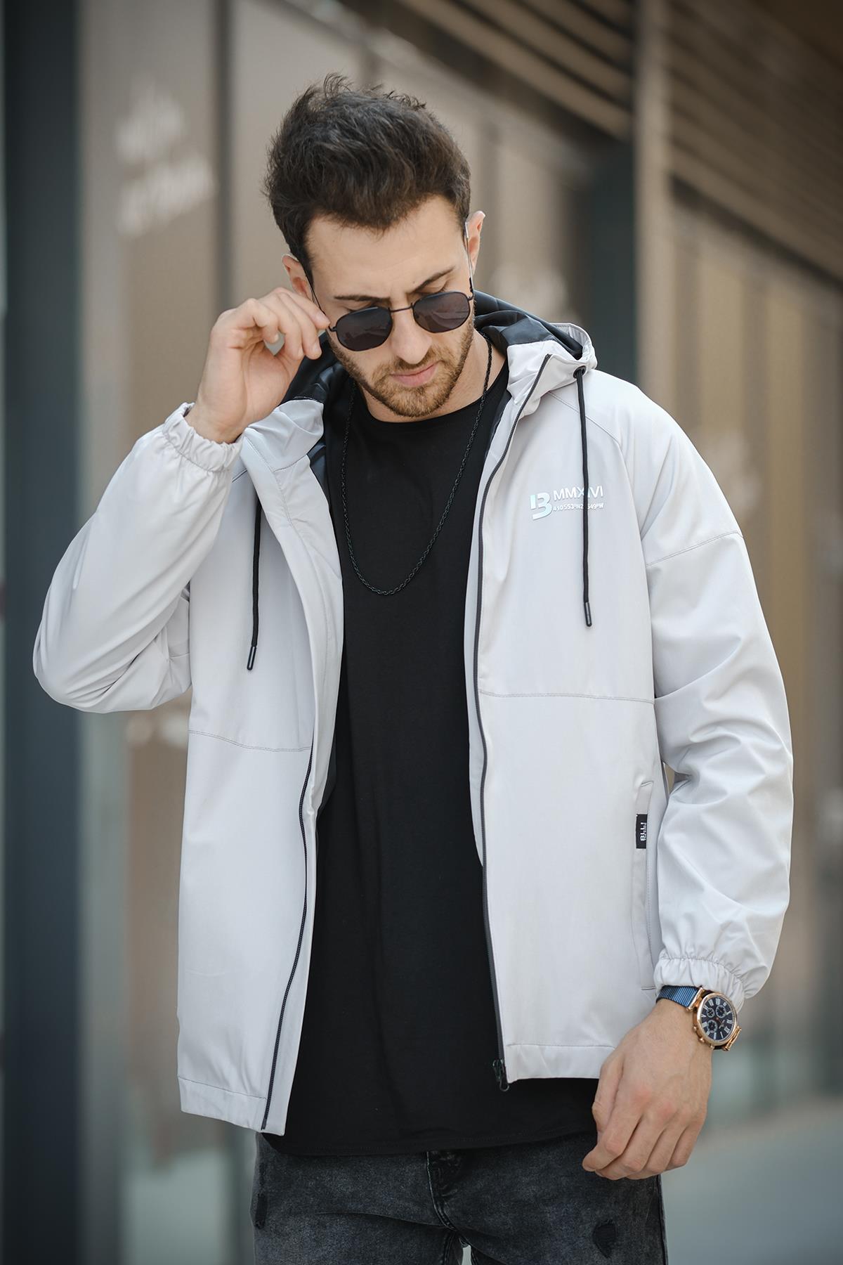 Mmx Baskılı Suya Dayanaklı Slim Fit Erkek Kapüşonlu Mevsimlik Mont Yağmurluk