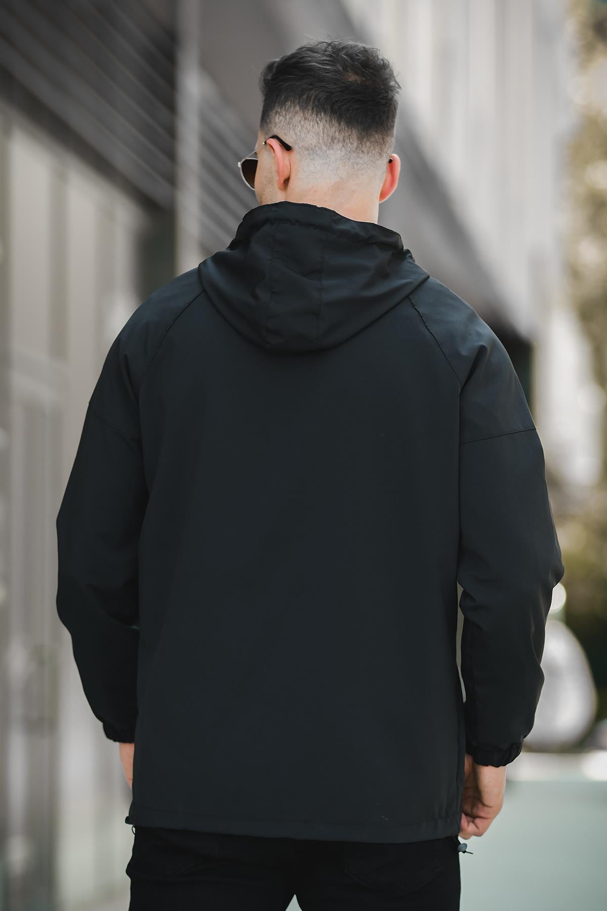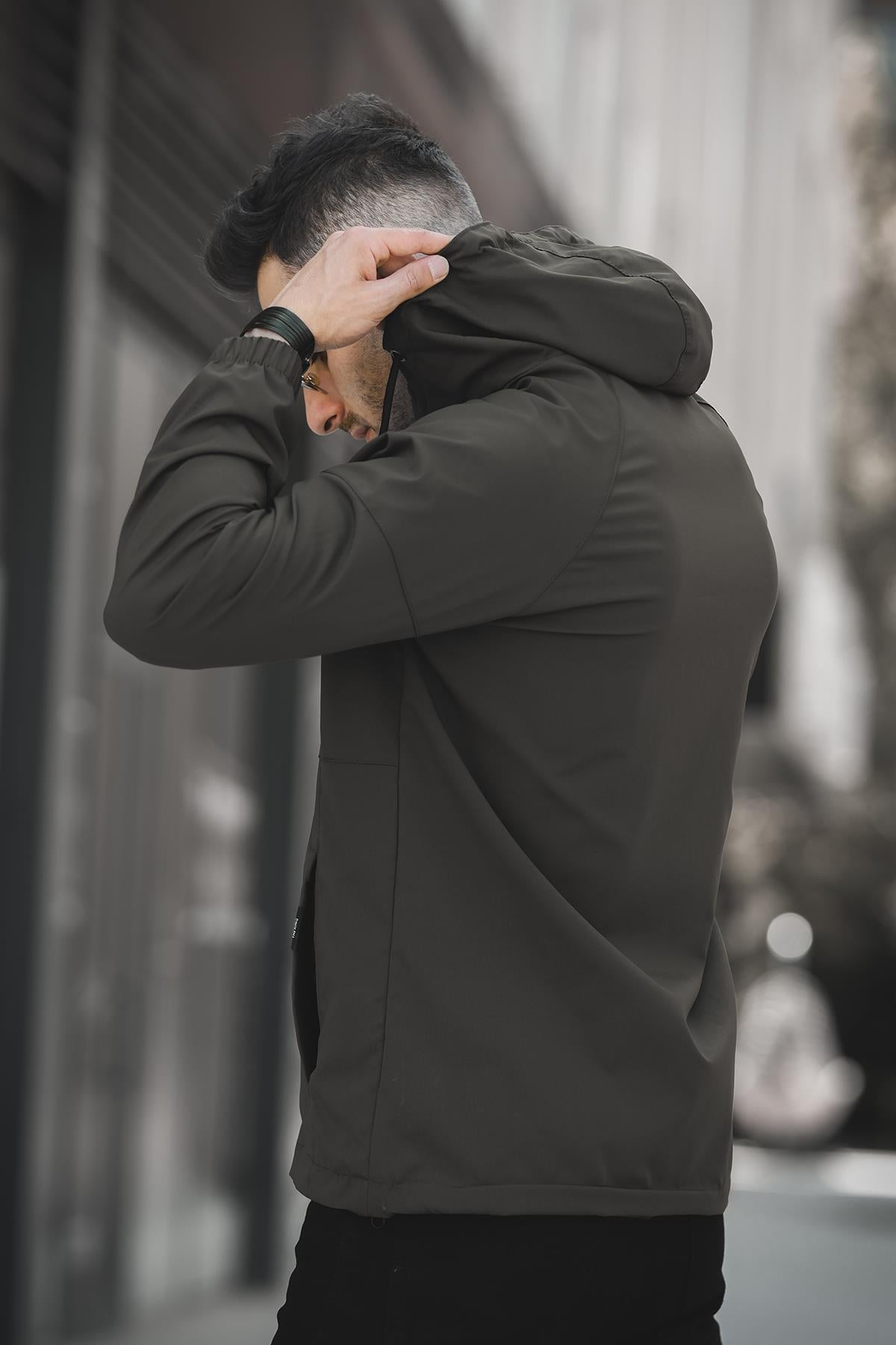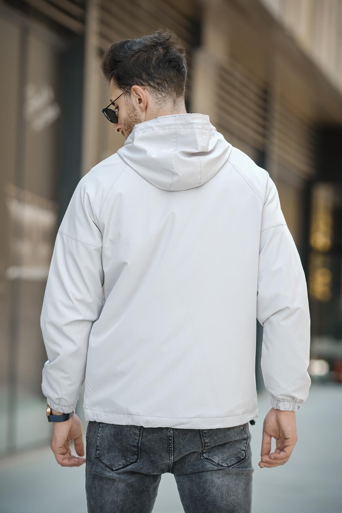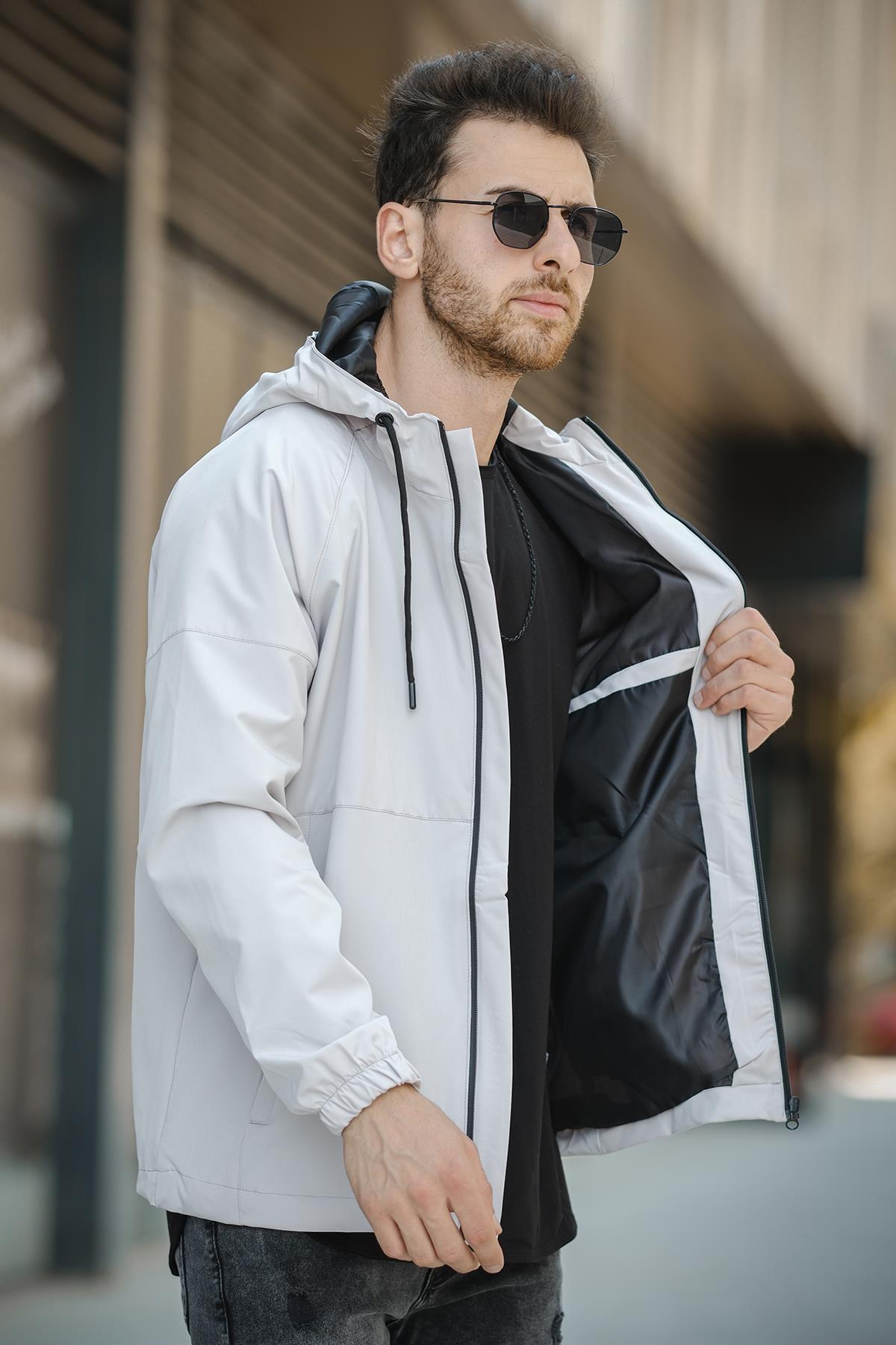 Mmx Baskılı Suya Dayanaklı Slim Fit Erkek Kapüşonlu Mevsimlik Mont Yağmurluk