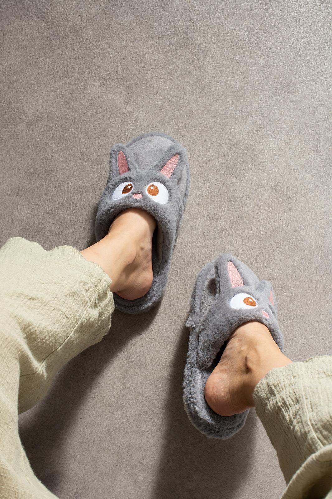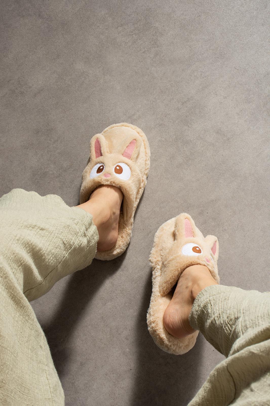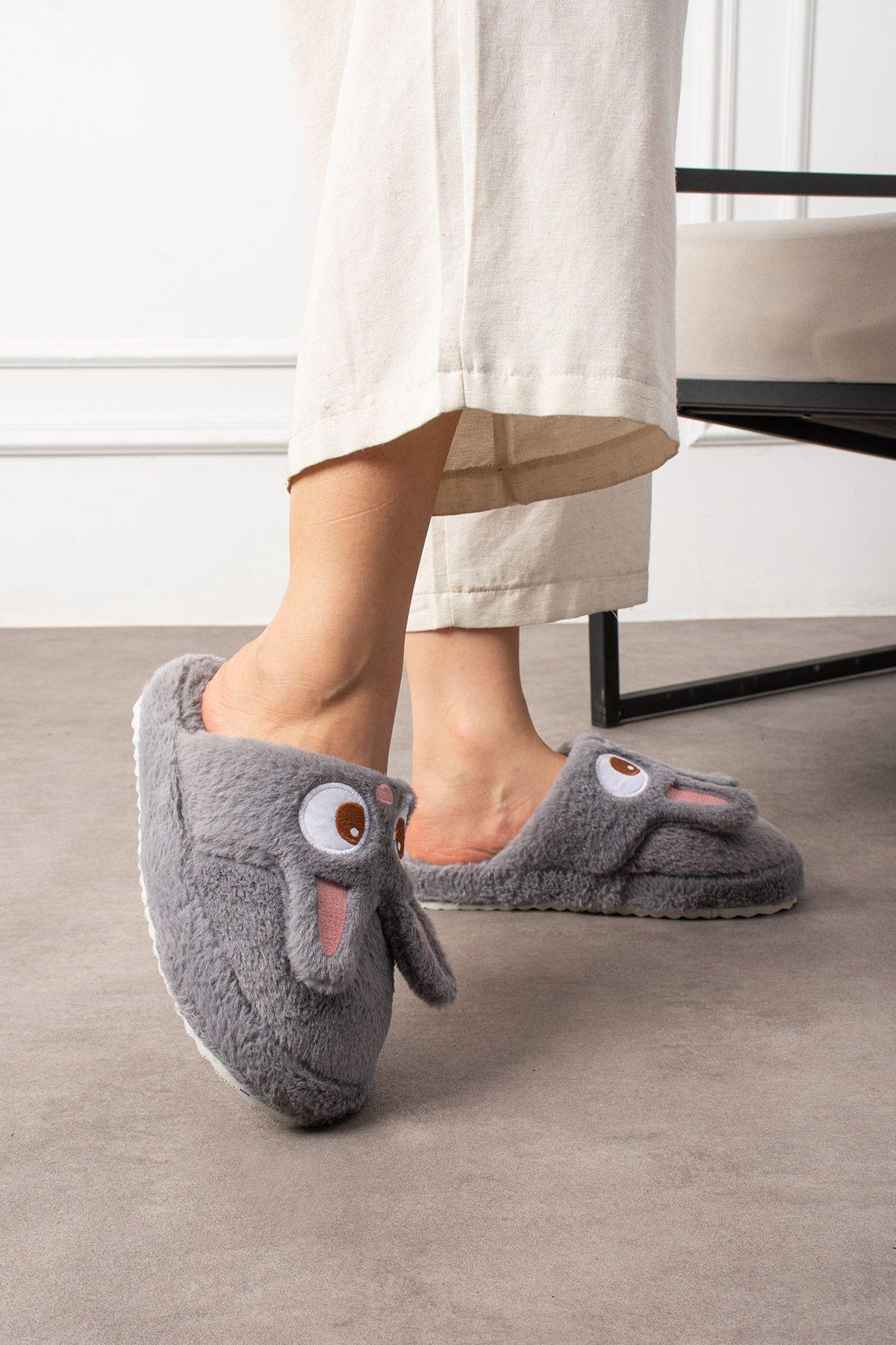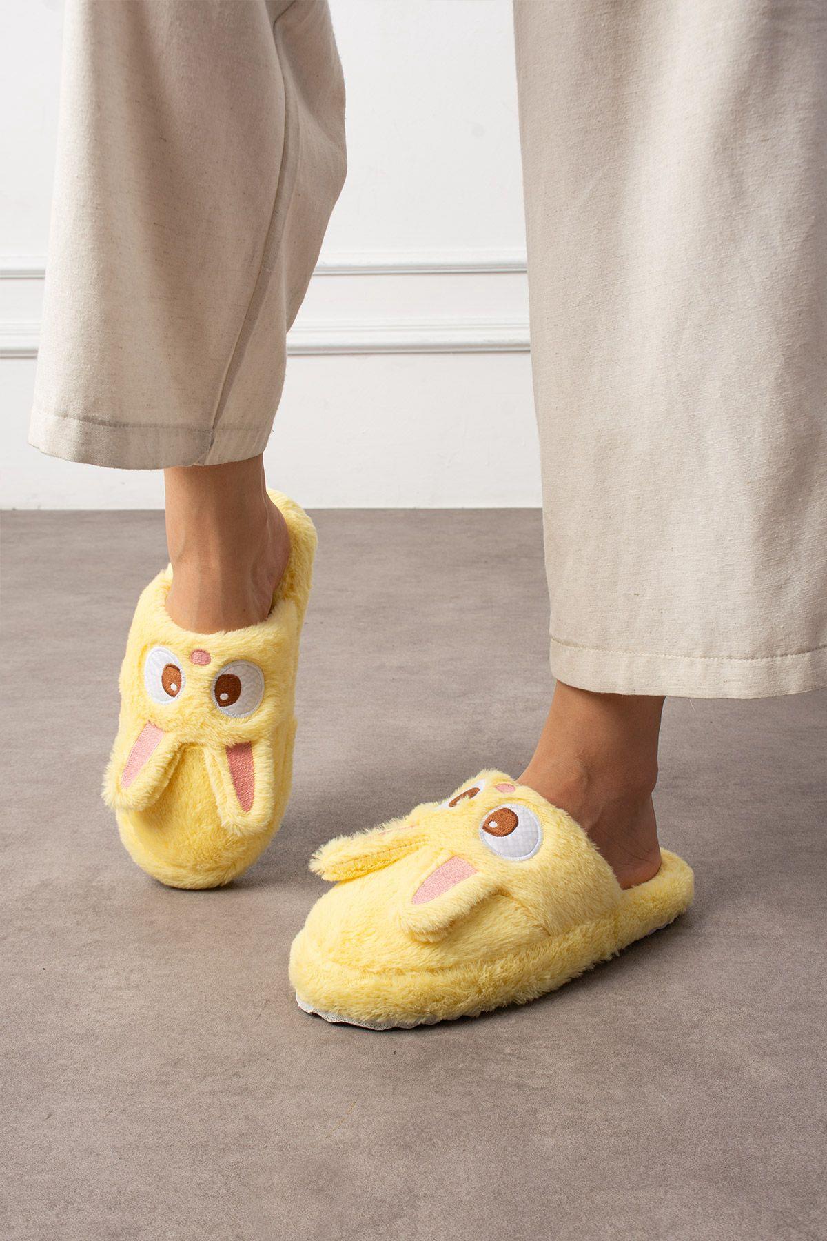 My Tavşan Nakışlı Kadın Ev Terliği Peluş Terlik Çeyiz ve Bohça Terliği Ses Yapmaz Kalın Taban