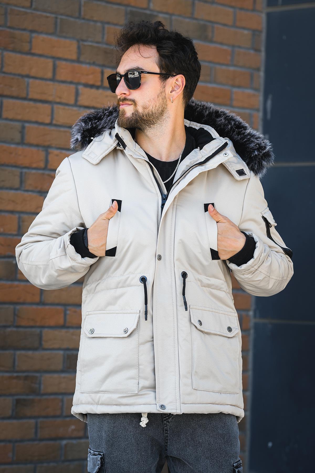 Remo İçi Kürklü Kapüşonlu Kanvas Uzun Kaban Parka